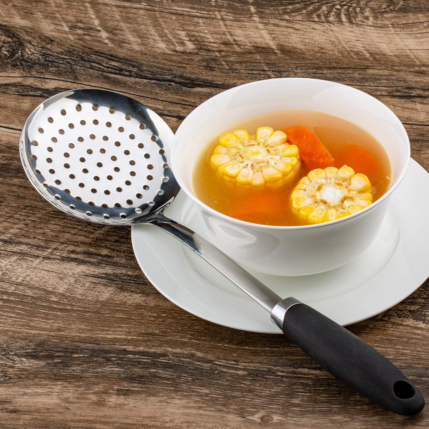 Brushed Stainless Steel Non-Slip Ergonomic Handle Skimmer