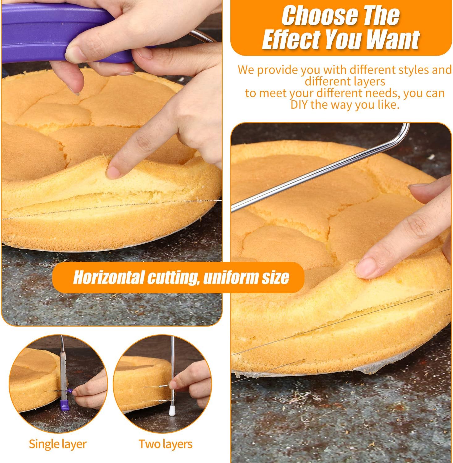- Material: the cake levelers are made of stainless steel, one of the levelers has been designed with non-slip plastic handle for better and comfortable grip, anti-rust and pointed wire for cutting; The cake knife is made of stainless steel with plastic handle, fine polished and serrated edge, cut cake into desired size pieces easily without hurting your hand