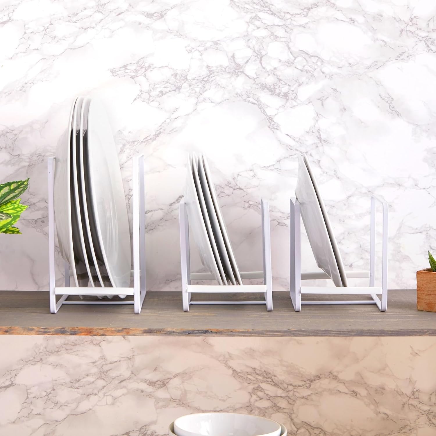 Juvale 3-Piece Plate Organizer - Space-Saving Cabinet Storage & Dish Storage Rack - Plate Stand & Pot Lid Holder - Pack of 3, White, 1 Large & 2 Small