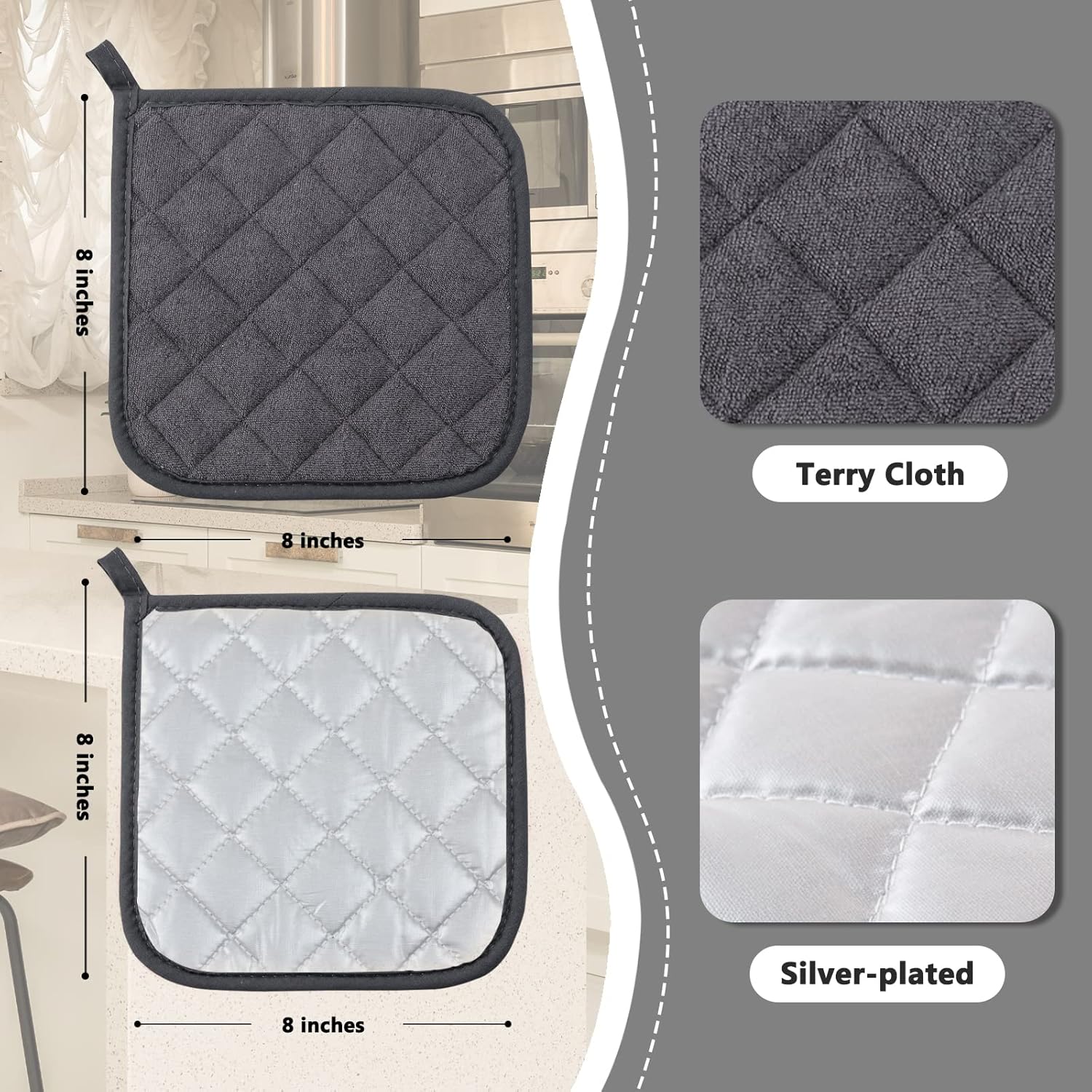 Joyhalo 6 Pack Pot Holders for Kitchen,Cotton Oven Holder with Great Heat Resistance,Non Slip Hot Pads for Kitchen Clearance,Dark Grey