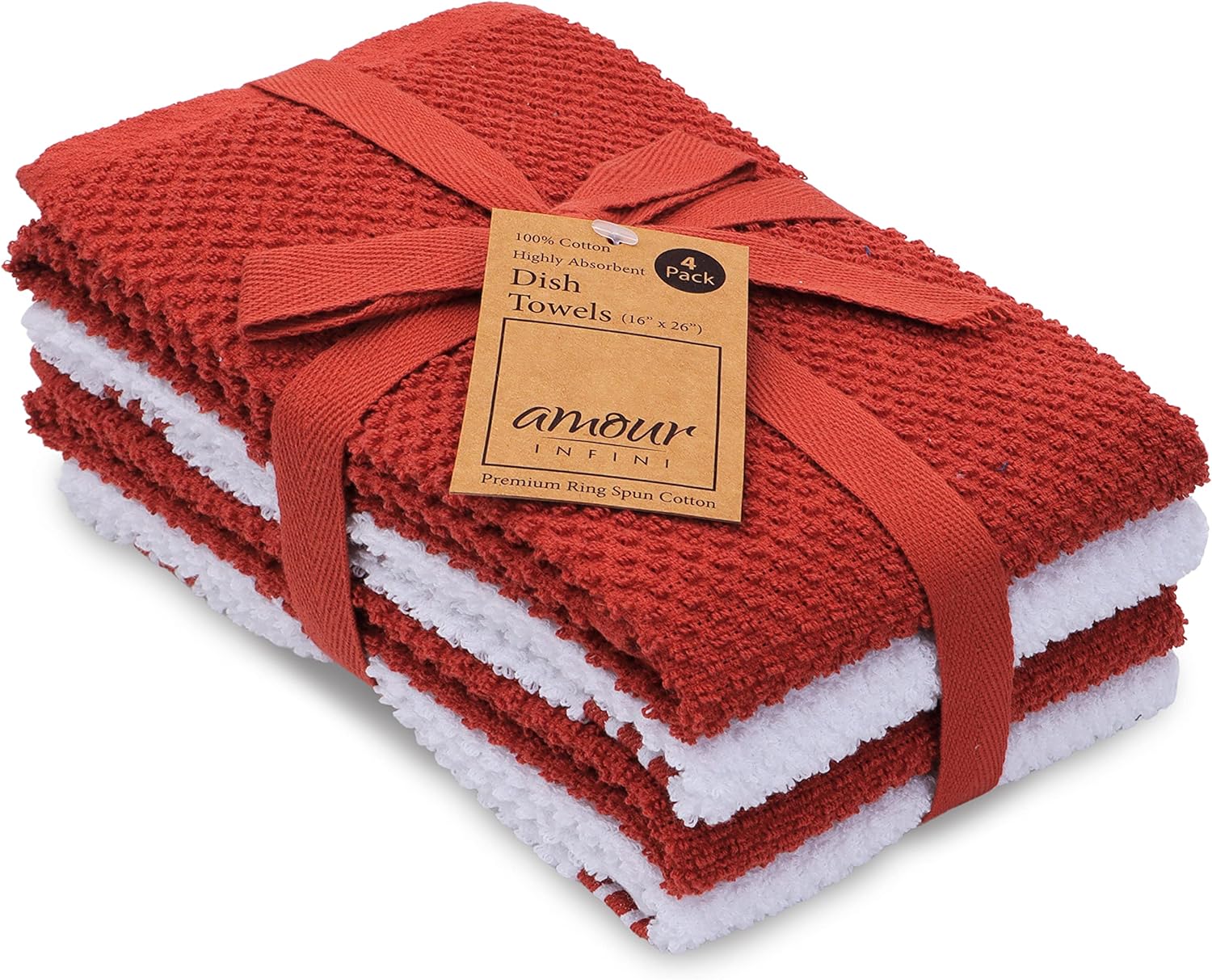 AMOUR INFINI Kitchen Towels Pack of 4 - Absorbent, Quick Drying Premium Cotton Tea Towel - Kitchen Linens 16x28 Inch Dish Towels with Hanging Loop (Rust)
