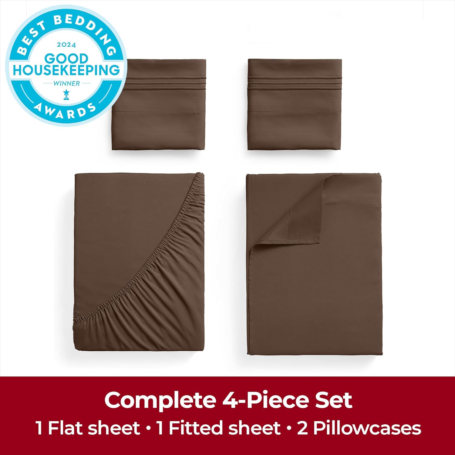 Mellanni Extra Deep Full Sheets - 4 PC Iconic Collection Bedding - Hotel Luxury, Ultra Soft, Cooling Bed Sheets - Wrinkle, Fade, Stain Resistant (Full, Brown)