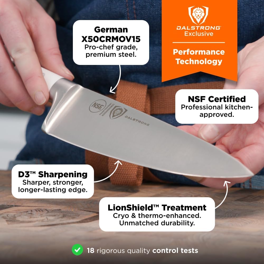 - Acacia locking knife block: Store and display your knives elegantly with the stunning Dalstrong Acacia Wood Block, designed for both functionality and aesthetic appeal. All the essential knives for any chef, complete in a stunning handmade block comparable to any walnut knife block, making it a top-quality knife block holder.