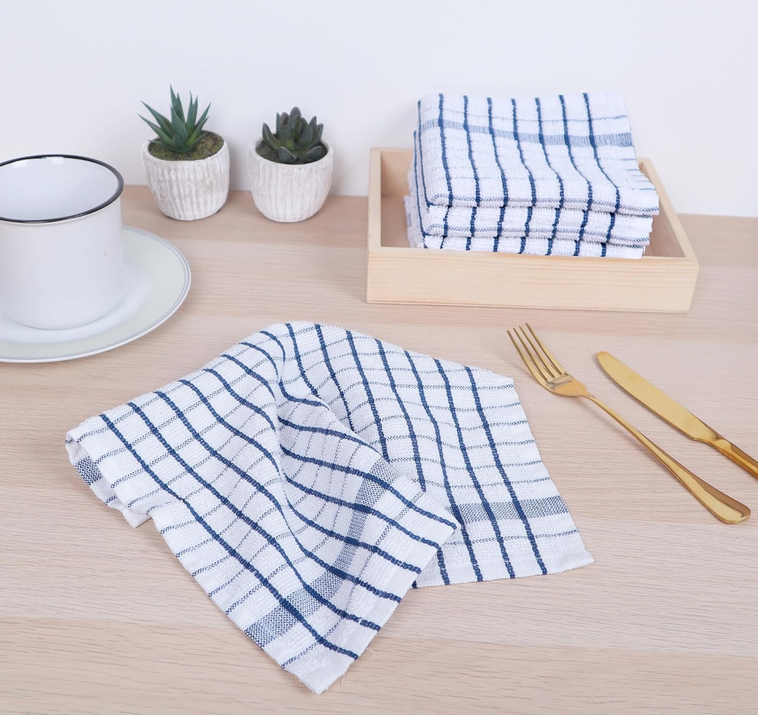 - SET OF 8 DISHCLOTHS: This set includes 8 premium-quality, 12" x 12" dish cloths, crafted from , high-density terry cotton. Ideal for everyday kitchen use, each cloth provides an excellent balance of softness and absorbency, ensuring a luxurious feel and optimal cleaning performance.