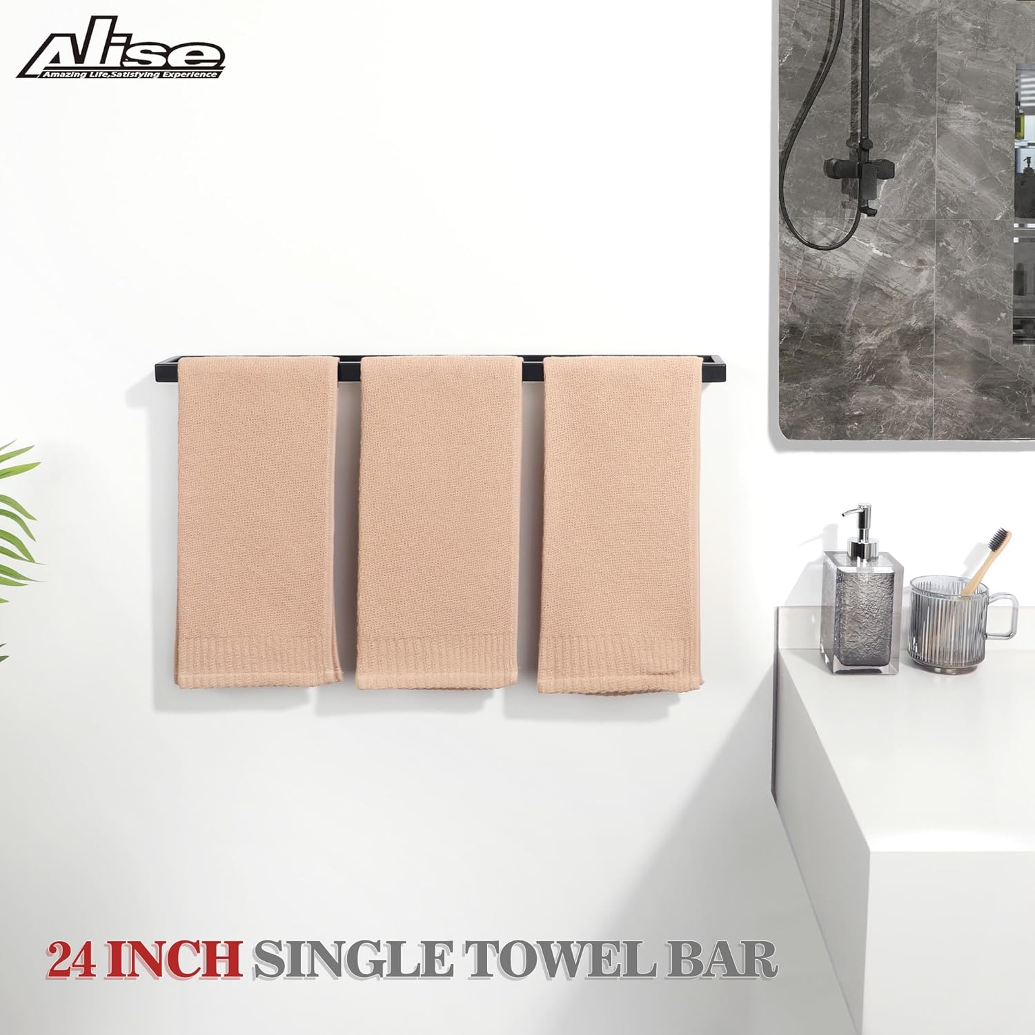 Alise Bath Towel Bars,24 Inch Towel Holder Towel Racks for Bathroom and Lavatory,SUS304 Stainless Steel Hand Towel Hanger Rail Wall Mount,Matte Black GJF060-B