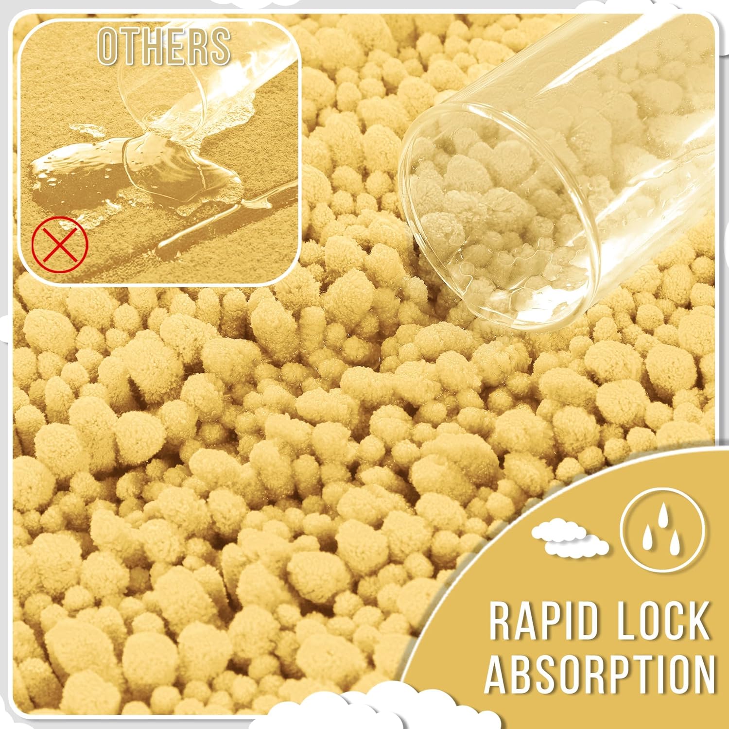 Yimobra Bathroom Rugs Non Slip Washable 24x17 Inch - Ultra Soft Absorbent Chenille Bath Mat, Quick Dry Shaggy Floor Carpet for Tub Shower, Yellow Home Decor Accessories