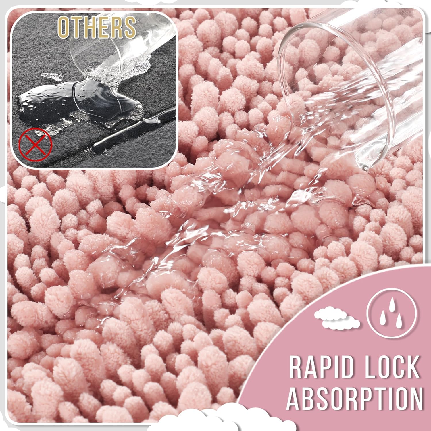 Yimobra Large Bathroom Rugs Non Slip Washable 36x24 Inch - Ultra Soft Absorbent Chenille Bath Mat, Quick Dry Shaggy Floor Carpet for Tub Shower, Light Pink Home Decor Accessories