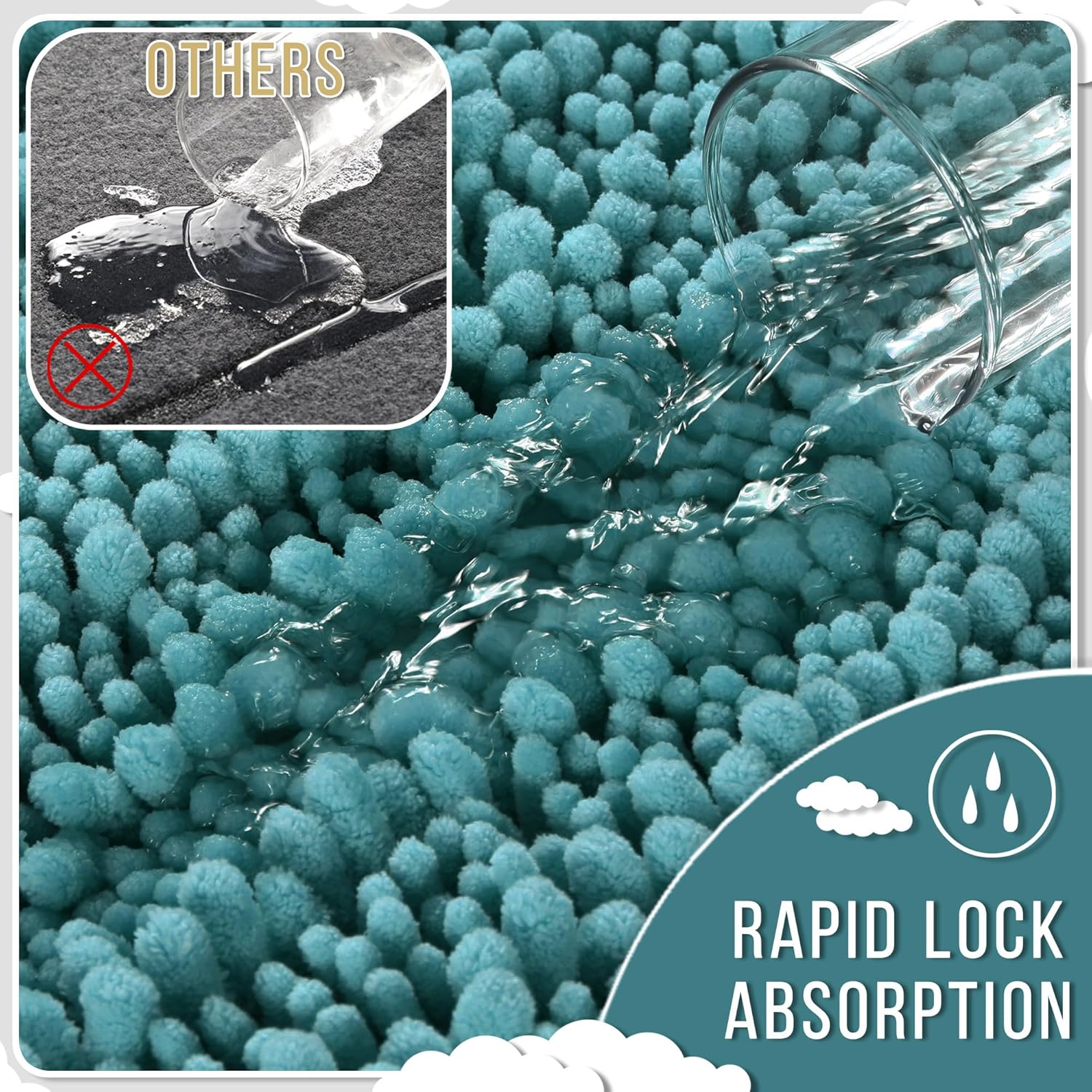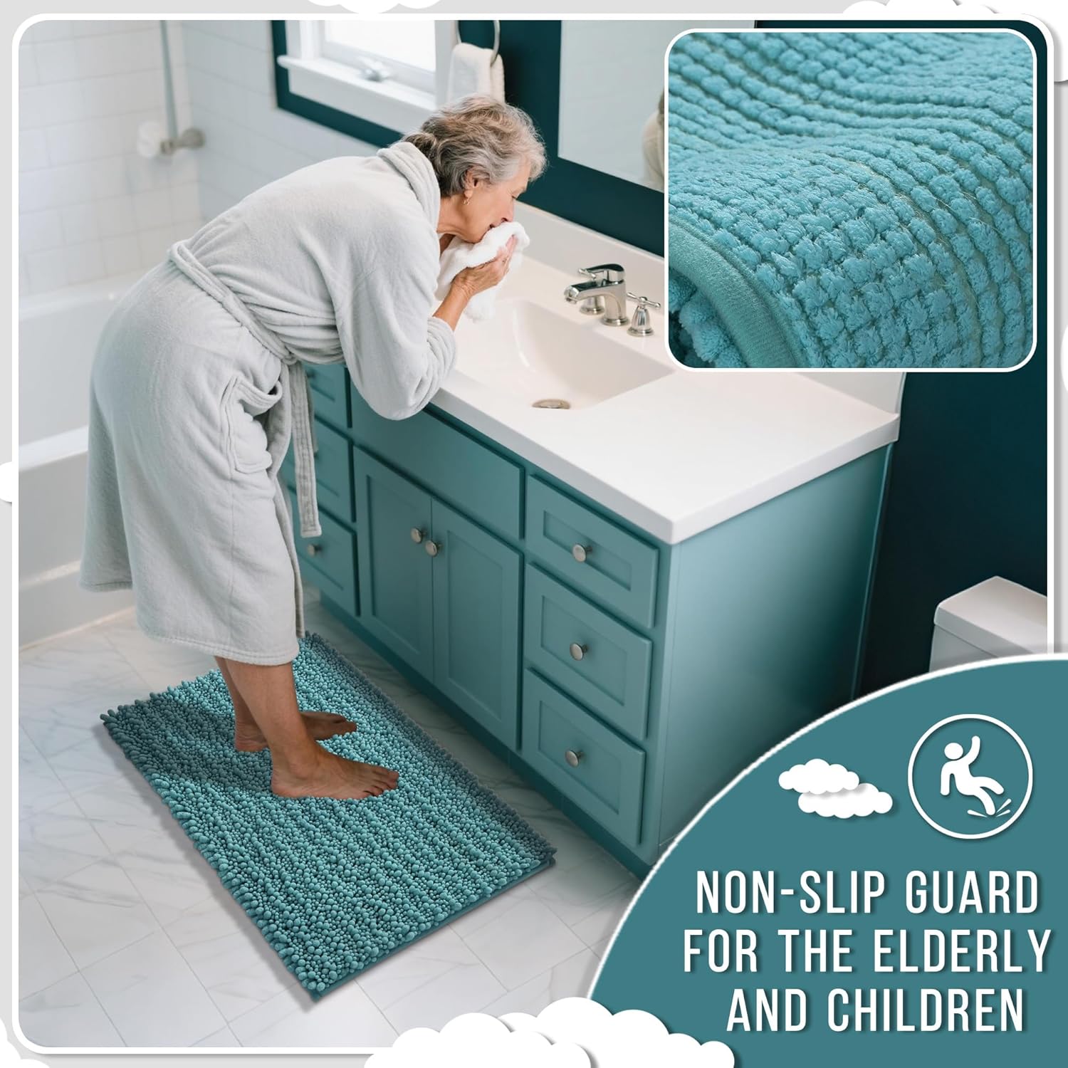 Yimobra Bathroom Runner Rug 55x24 Inch - Extra Long Non Slip Chenille Bath Mat, Soft & Absorbent, Machine Washable Shaggy Hallway Carpet for Vanity Tub Shower, Teal Blue Home Decor Accessories