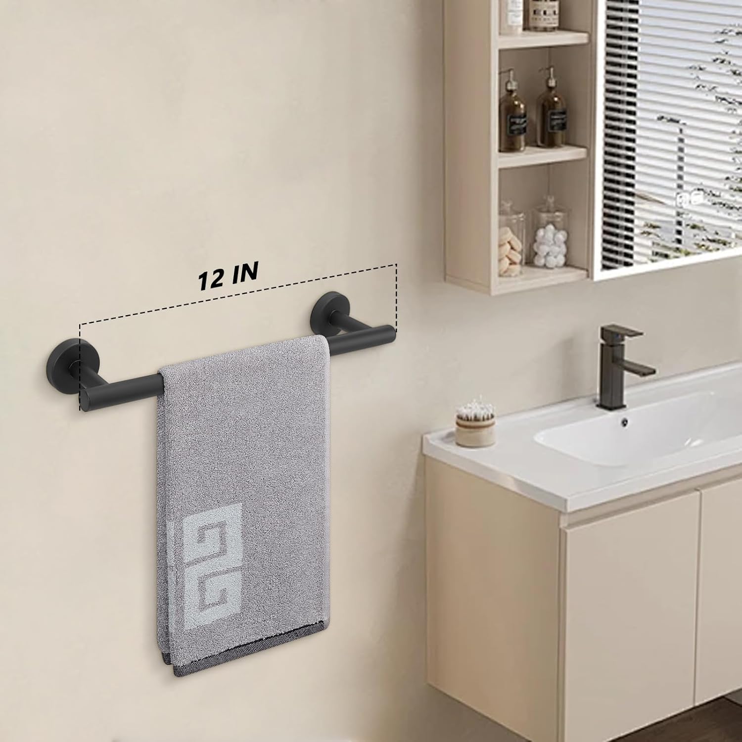 NearMoon Bath Towel Bar, Bath Accessories Thicken Stainless Steel Shower Towel Rack for Bathroom, Towel Holder Wall Mounted (1 Pack, Matte Black, 12 Inch)