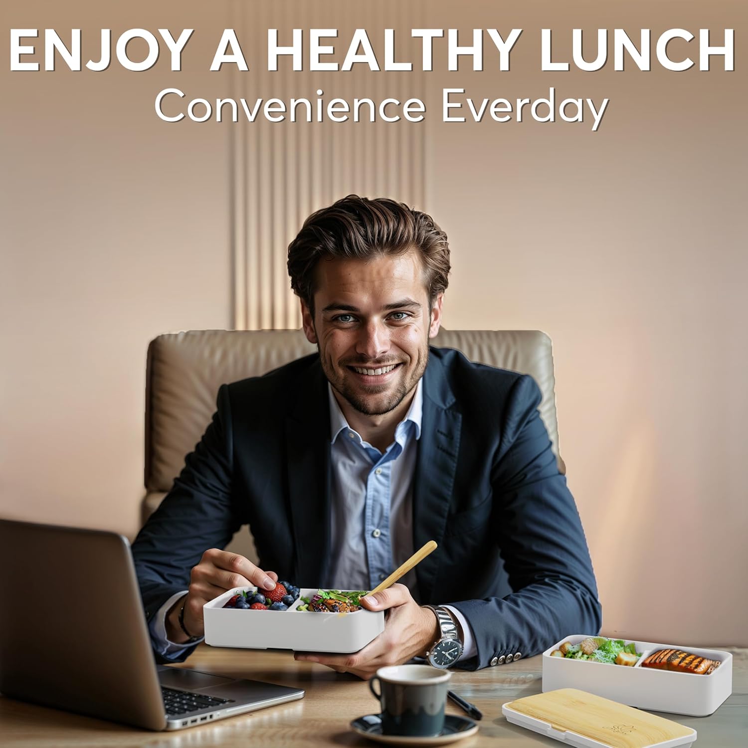 - All-in-One Solution: Discover the bento box adult all-in-one, perfect for busy professionals and frequent travelers. The lunch containers for women/men includes 2 movable dividers, a large sauce jar and a complete utensil set.