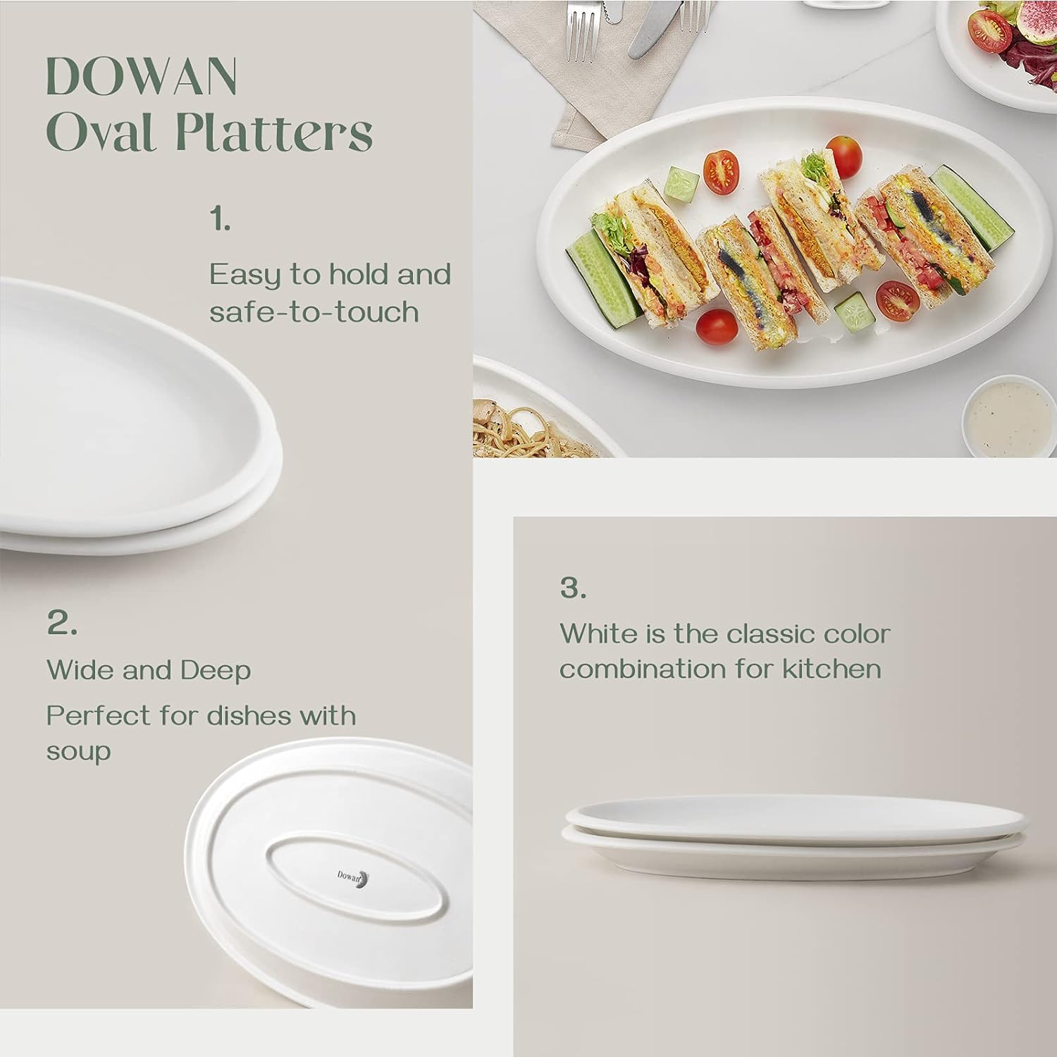 - Easy to Clean and Store:The smooth surface is easy to clean and stacking and zero tilt function can improve cabinet space efficiency. DOWAN porcelain oval serving platters can be cleaned easily with warm water and they're dishwashers safe.