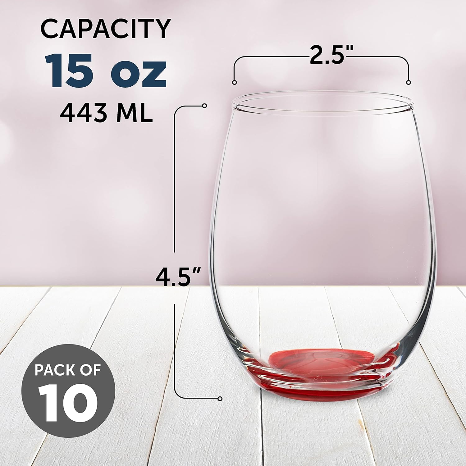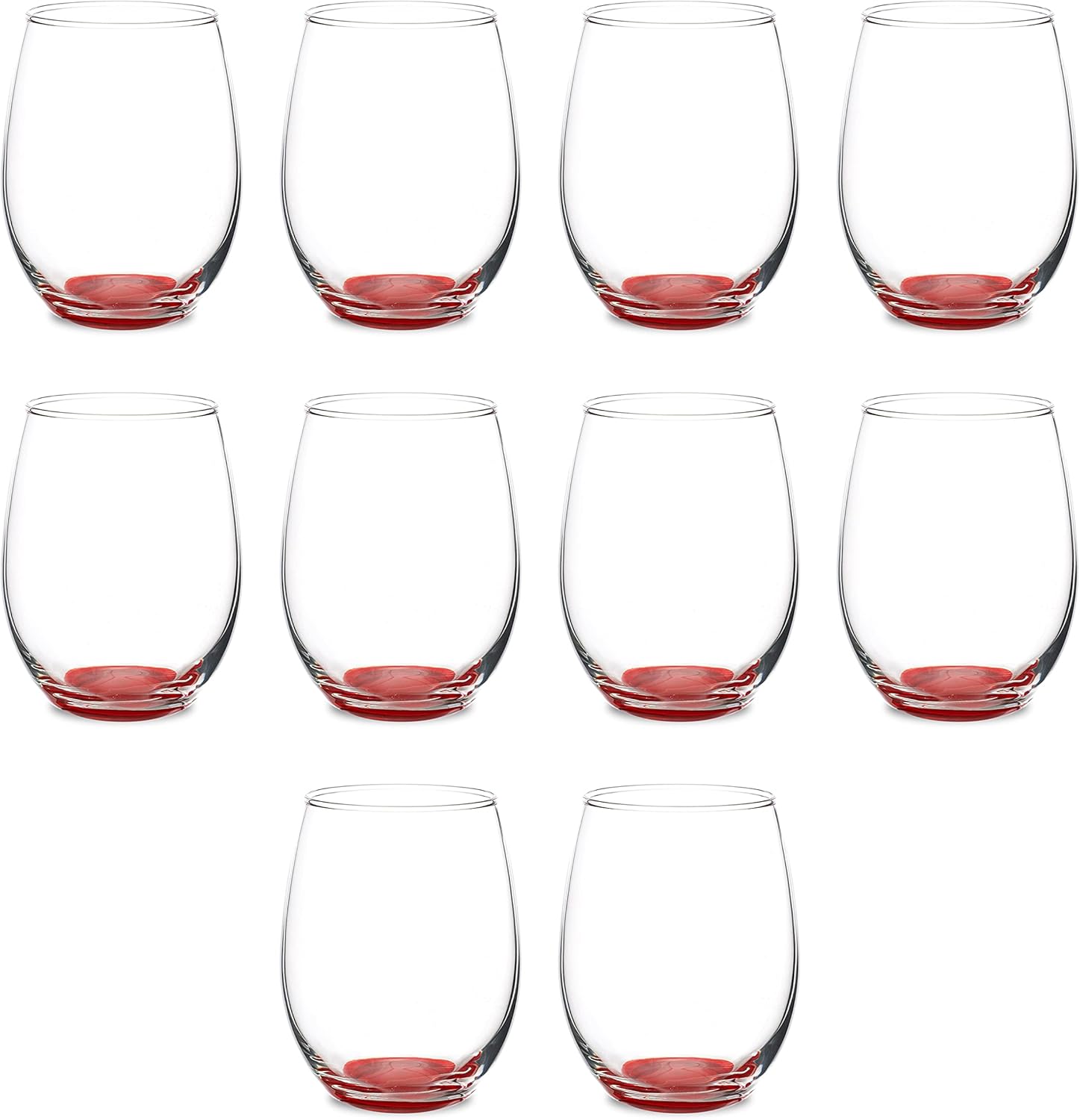DISCOUNT PROMOS Stemless Wine Glasses in Bulk by ARC Perfection, 15 oz, 10 Pack, Red or White Wine Glass Set, Red