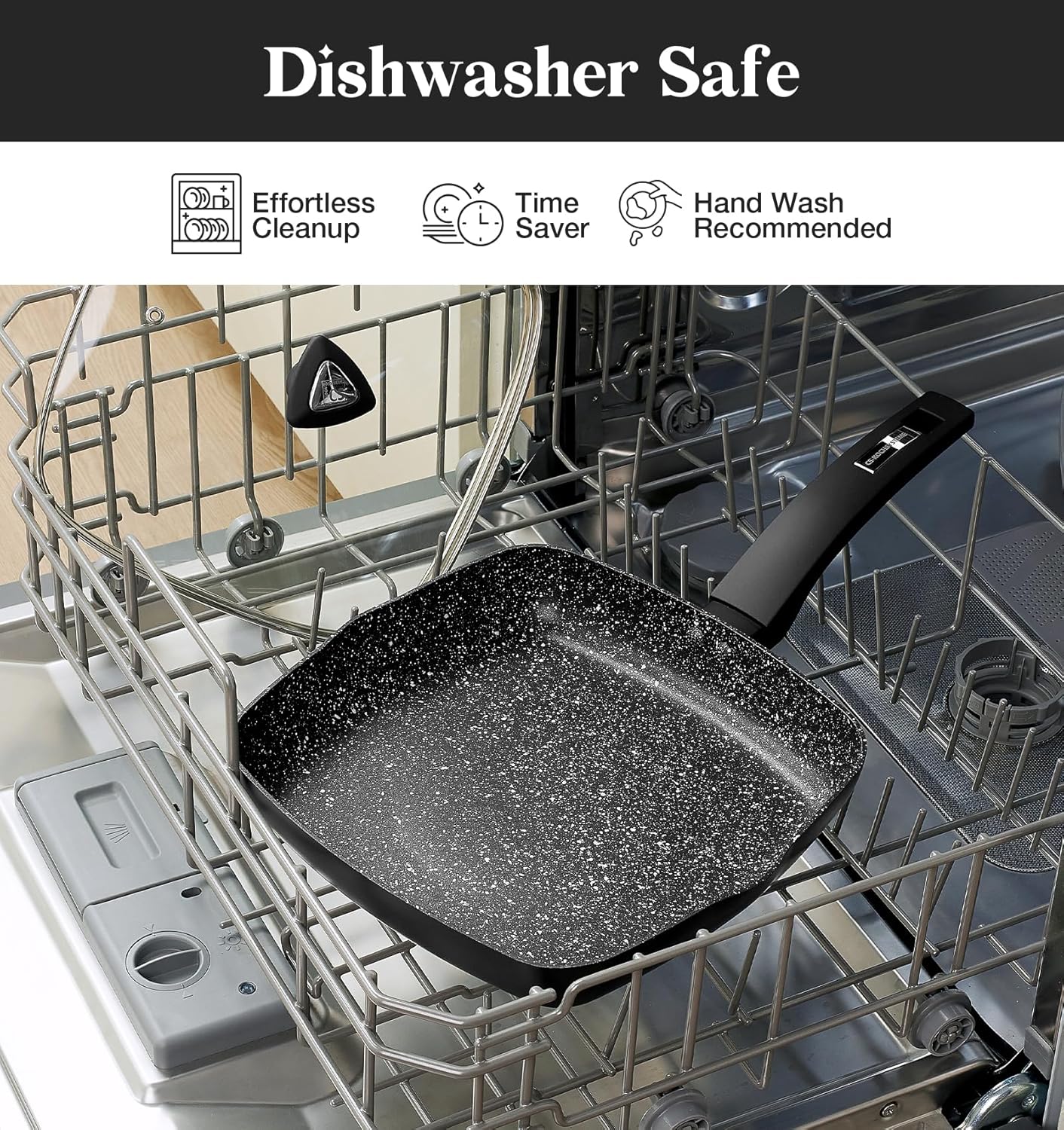 KOCH SYSTEME CS 9.5 Inch Nonstick Grill Pan for Stove Tops, Marble Coating Square Grill Skillet with Lid, Fry Pan Compatible with all Stoves, Ultimate Nonstick Skillet with Bakelite Handle, Toxic-Free
