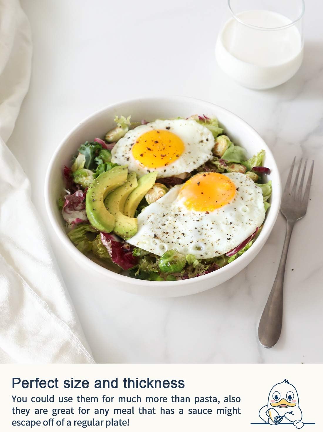- A Multi-Functional Bowls:A unique and trendy shaped bowl can be doubled as a bowl and plate. Wide mouth, even large size food can be easily put in and easy to spoon out everything with this shape. Also, it could quickly cool the food, save your time to taste delicious food. They would be the timeless classics in your cupboard