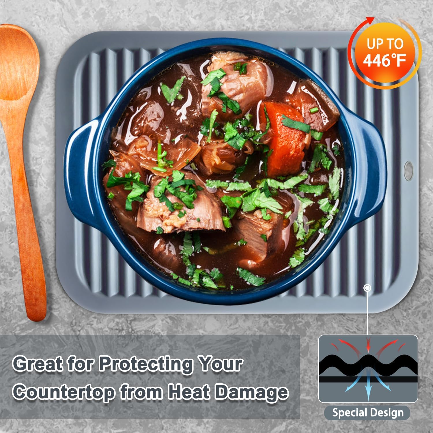 - HEAT RESISTANT UP TO 446°F: Walfos Big Silicone Trivets mat heat resistant up to 446°F, Raised wide ridges will separates the hot pot from the table, protect your kitchen surfaces from scalding
