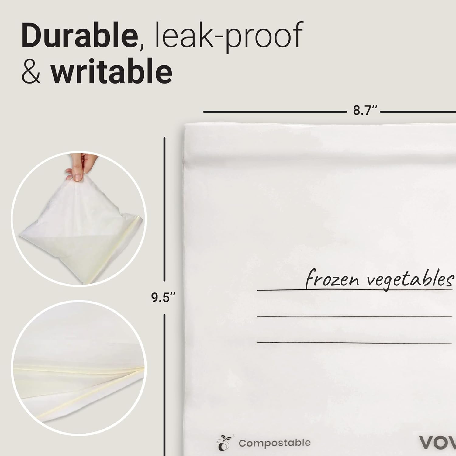 Vove Compostable Zip Bags | 30-Pack Quart Size (1L) | PLA PBAT Biodegradable Storage Bags | Certified Eco-Friendly Food Storage | Zero Waste Kitchen | Plastic-Free Sustainable Storage