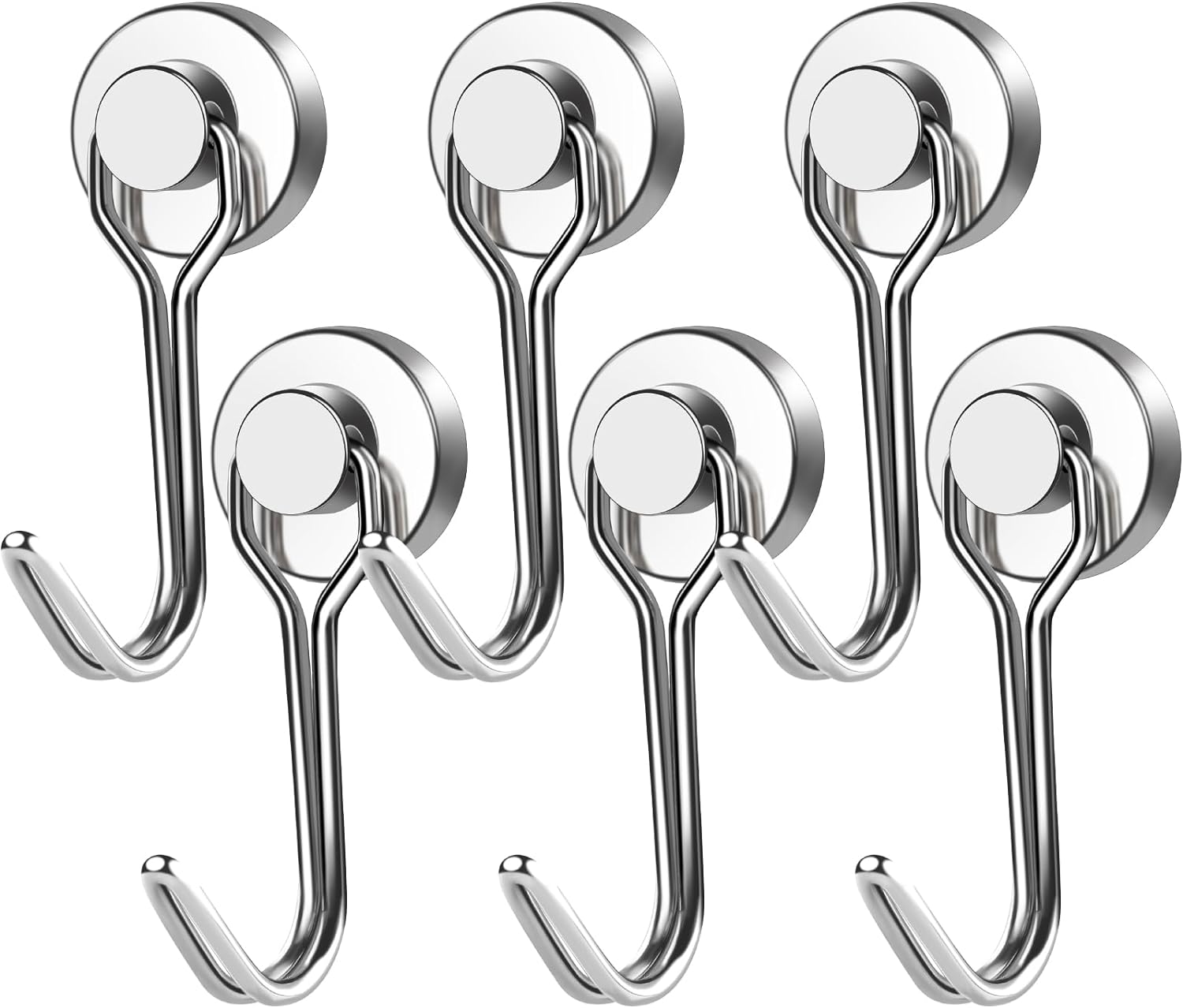 E BAVITE Swivel Swing Magnetic Hooks New Upgraded, 30LB(6pack) Refrigerator Magnet Hook Strong Neodymium Magnets, Perfect for Refrigerator and Other Surfaces,60mm(2.36in) in