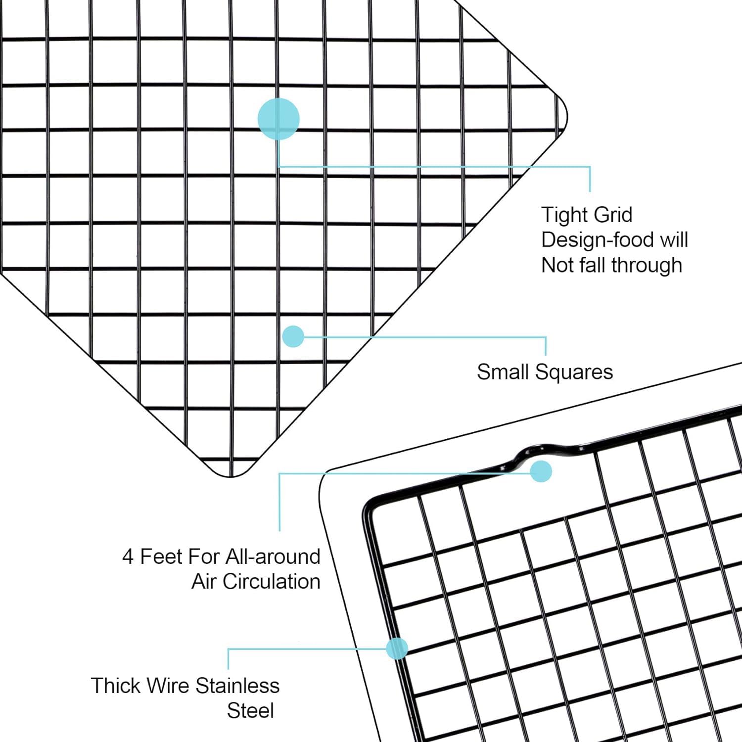 - Kitchen cooling rack good for baking, cooking, roasting, grilling, and broiling.