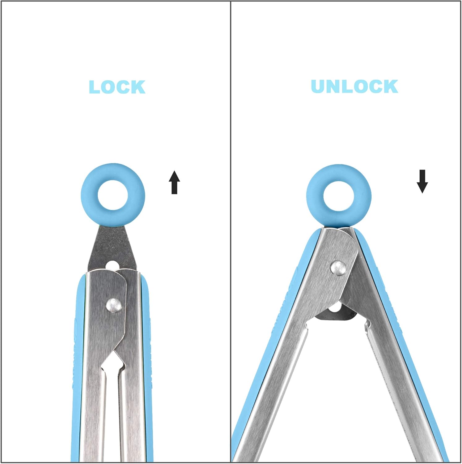 ALLWIN-HOUSEWARE W 304 Stainless Steel Kitchen Cooking Tongs, 9" and 12" Set of 2 Sturdy Grilling Barbeque Brushed Locking Food Tongs with Ergonomic Grip, Blue