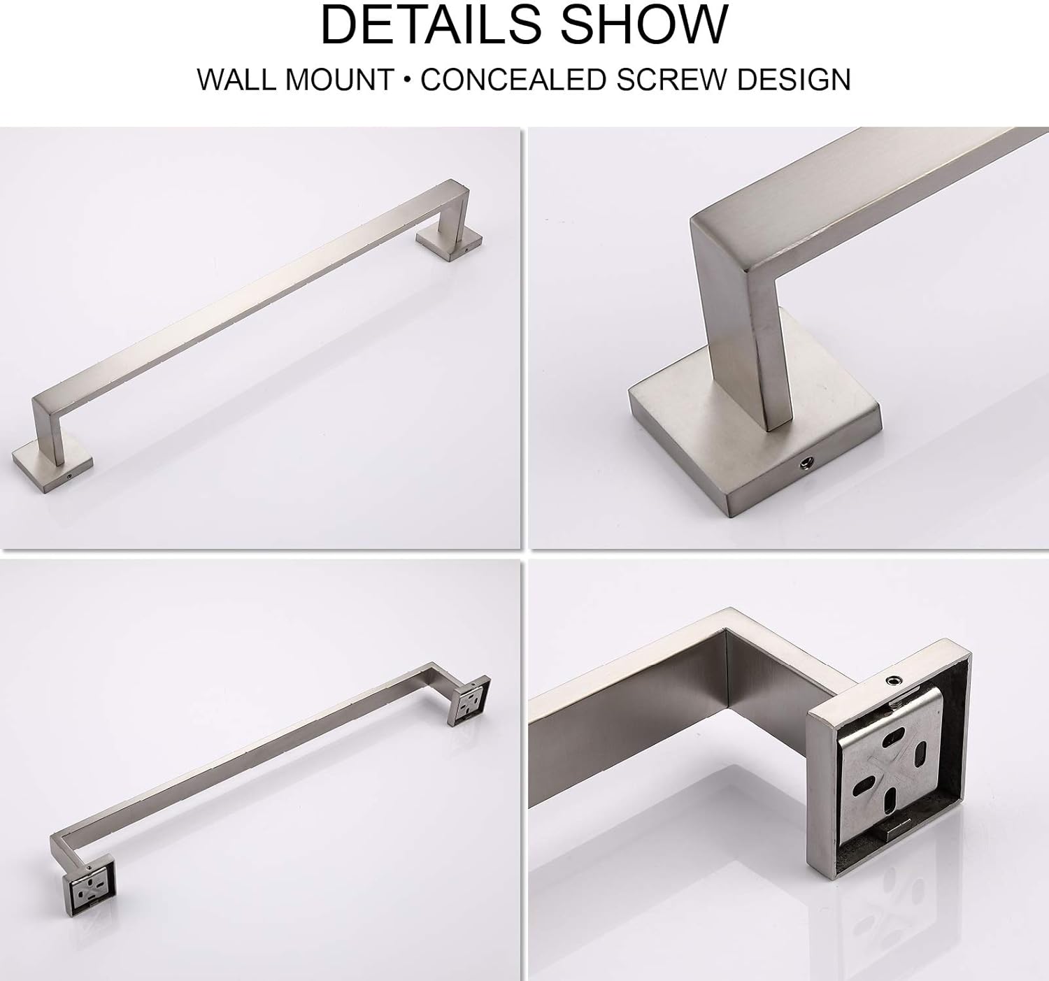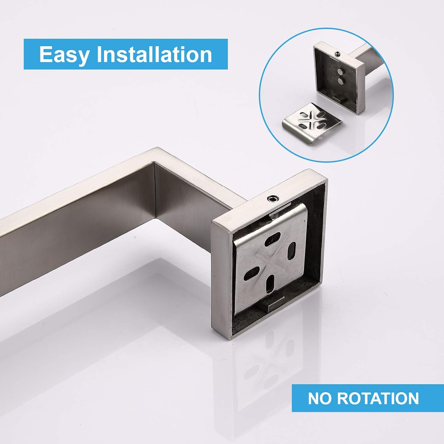 - Easy Installation: All hardware fittings are included in the package, concealed Screw Mount, the mounting screws are hidden and out of sight. SUS304 stainless towel bar with square base installation make more stable.