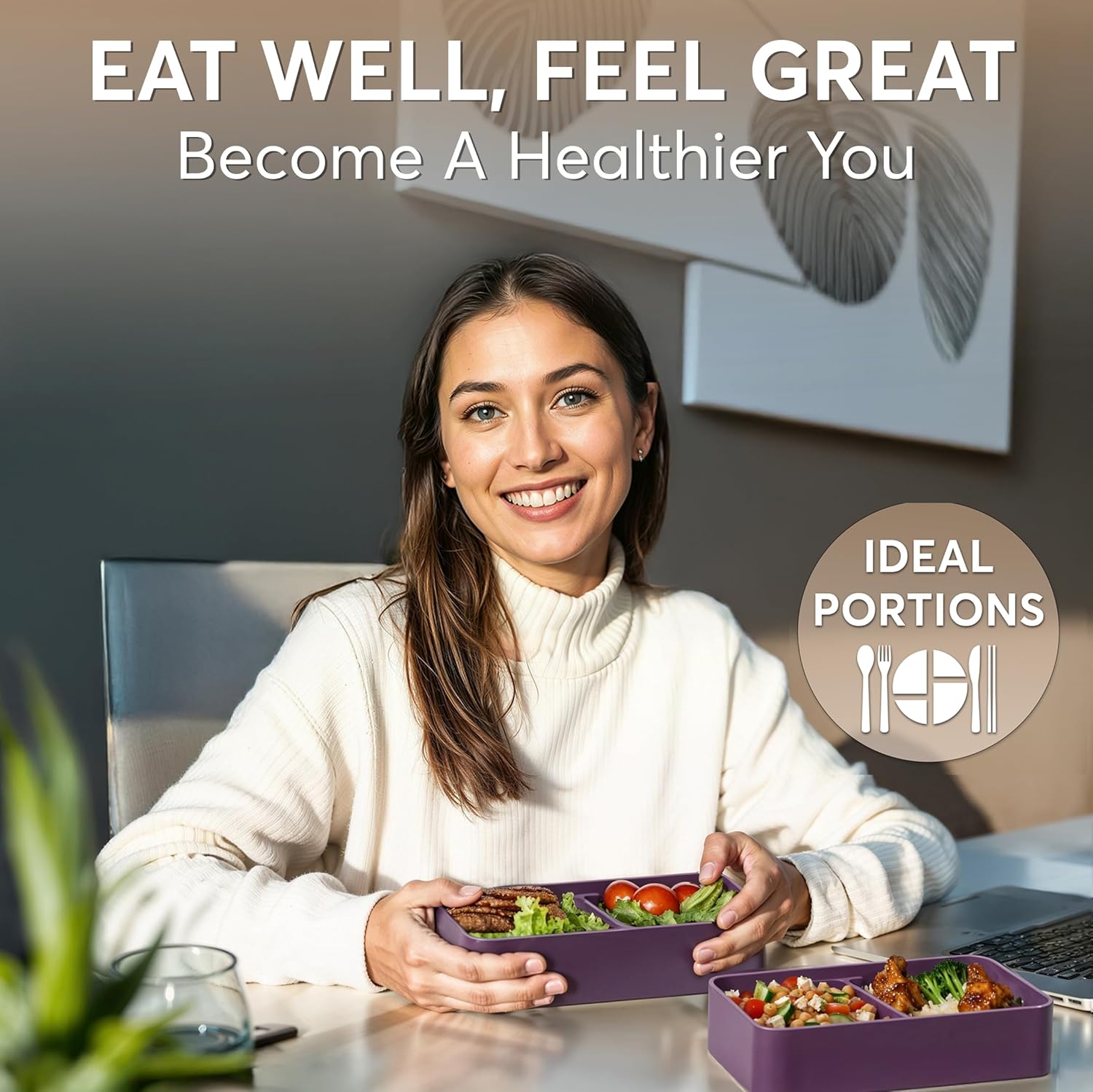 - 100% Leakproof - No more leaks & spills. Carry your favorite lunch in style. The lunch box with compartments and 2 layers will fit a full meal and have space for desert.