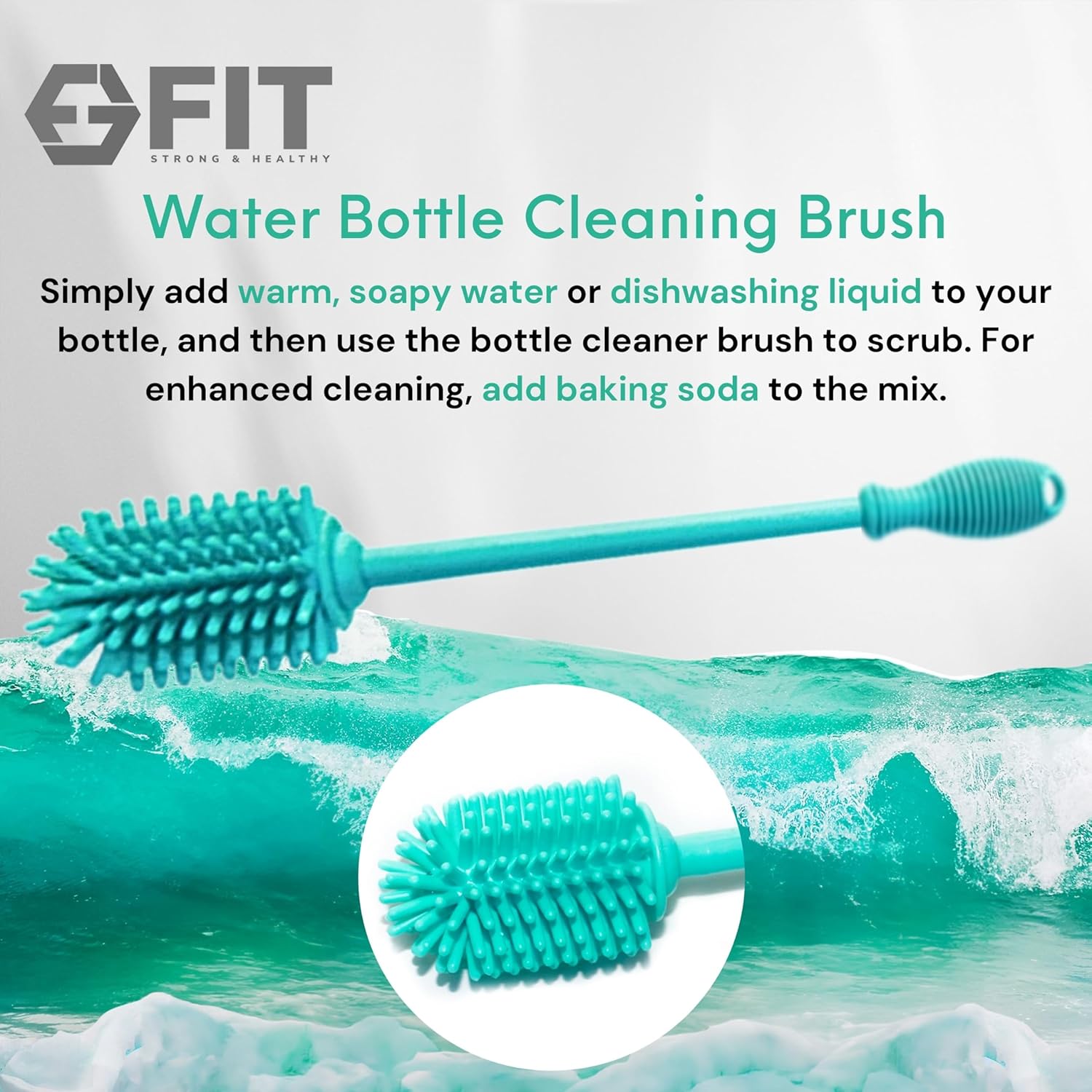 - Water Bottle and Cleaning Brush Set: Upgrade your hydration routine with our 32 oz Glass Water Bottle with Time Marker and Cleaning Brush Set; this version features an extra thick silicone sleeve for extra protection, insulation, and a secure grip; we've also upgraded one of the lids to a straw lid for sipping on the go; the 32-inch Water Bottle Brush is made from durable silicone material, which effectively removes dirt and residue; plus, it does not absorb unpleasant odors and stains