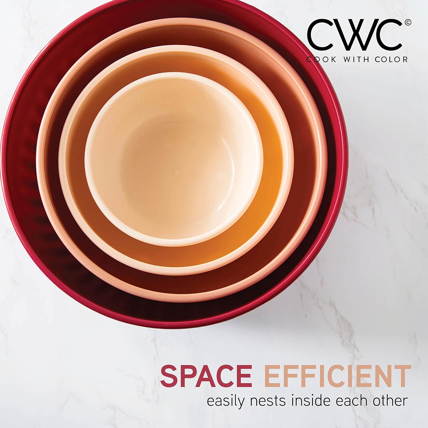 - Beautiful Cook with Color bowls will enhance your cooking experience in class! Our 8 piece small mixing bowl set with lids add a decorative touch and functionality. The chic colors make them great for kitchen to table serving.