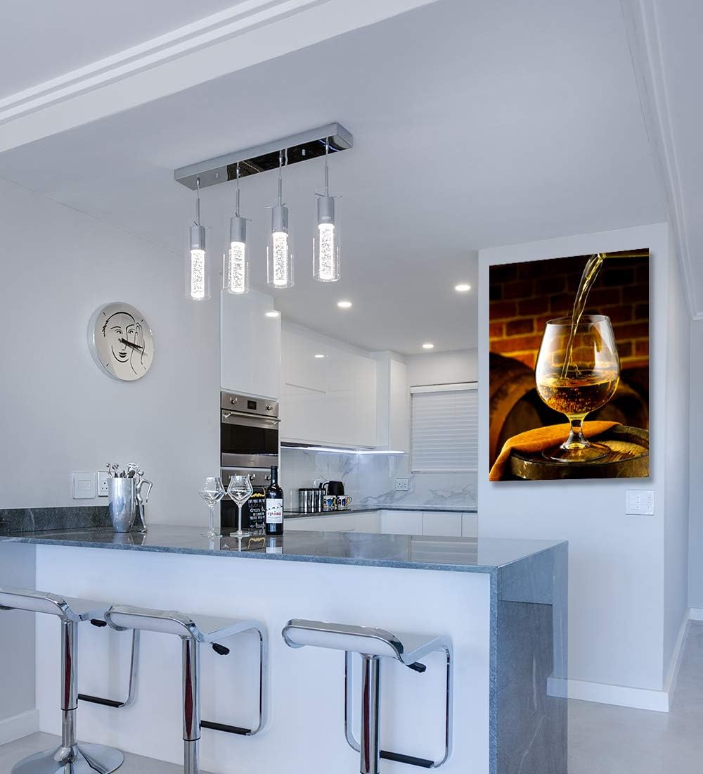 Looife Kitchen Wine Bottle Canvas Wall Art, 30x40 Inch Gallery Wrapped Whiskey Wine Glass Cup Picture Prints Wall Decor, Modern Art Deco for Dining Room and Bar Wall Decoration