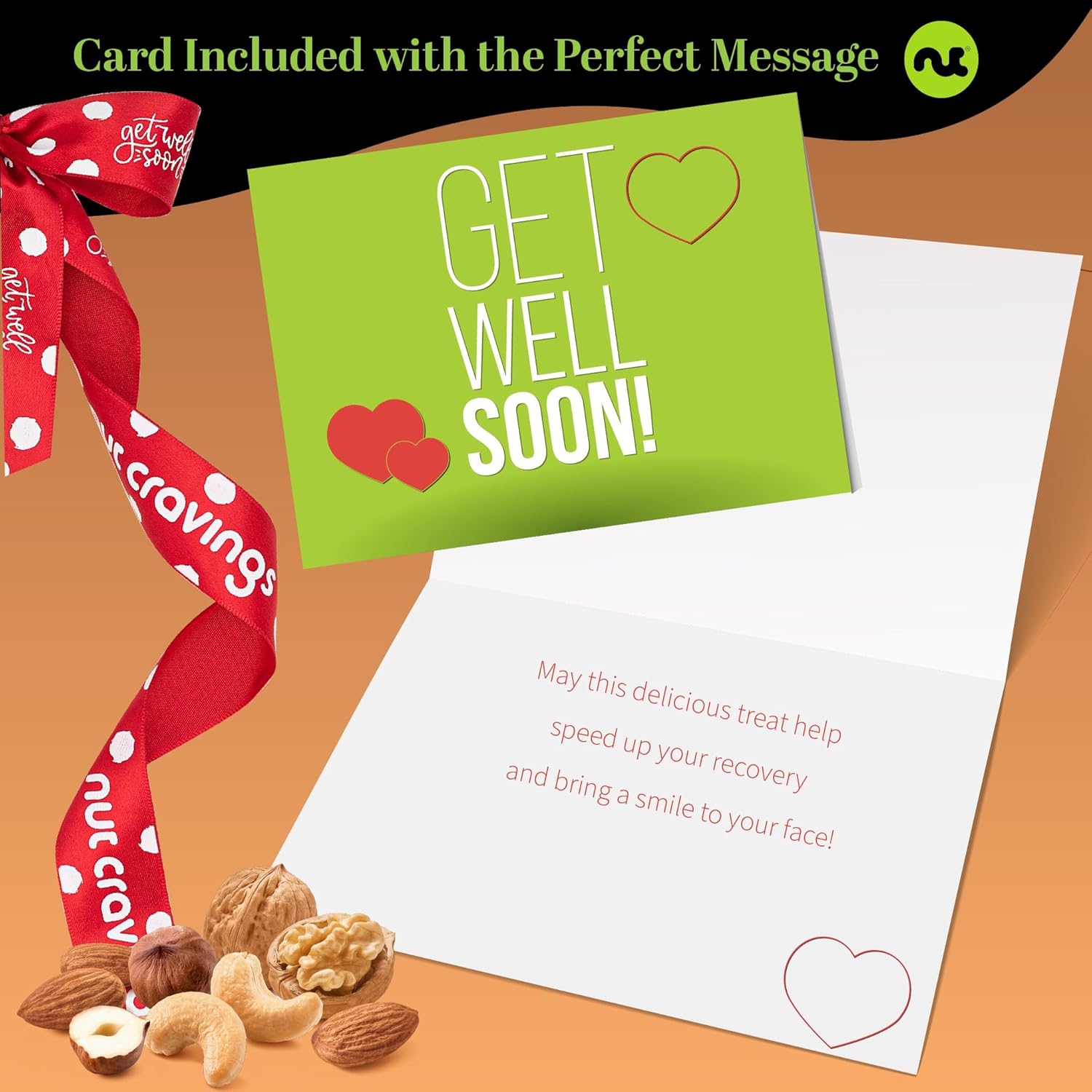 NUT CRAVINGS Gourmet Collection - Get Well Soon, Nuts Gift Basket with Get Well Soon Ribbon in Reusable Wooden Tray (12 Assortments) Food Arrangement, Healthy Snack Care Package, Food Assortments