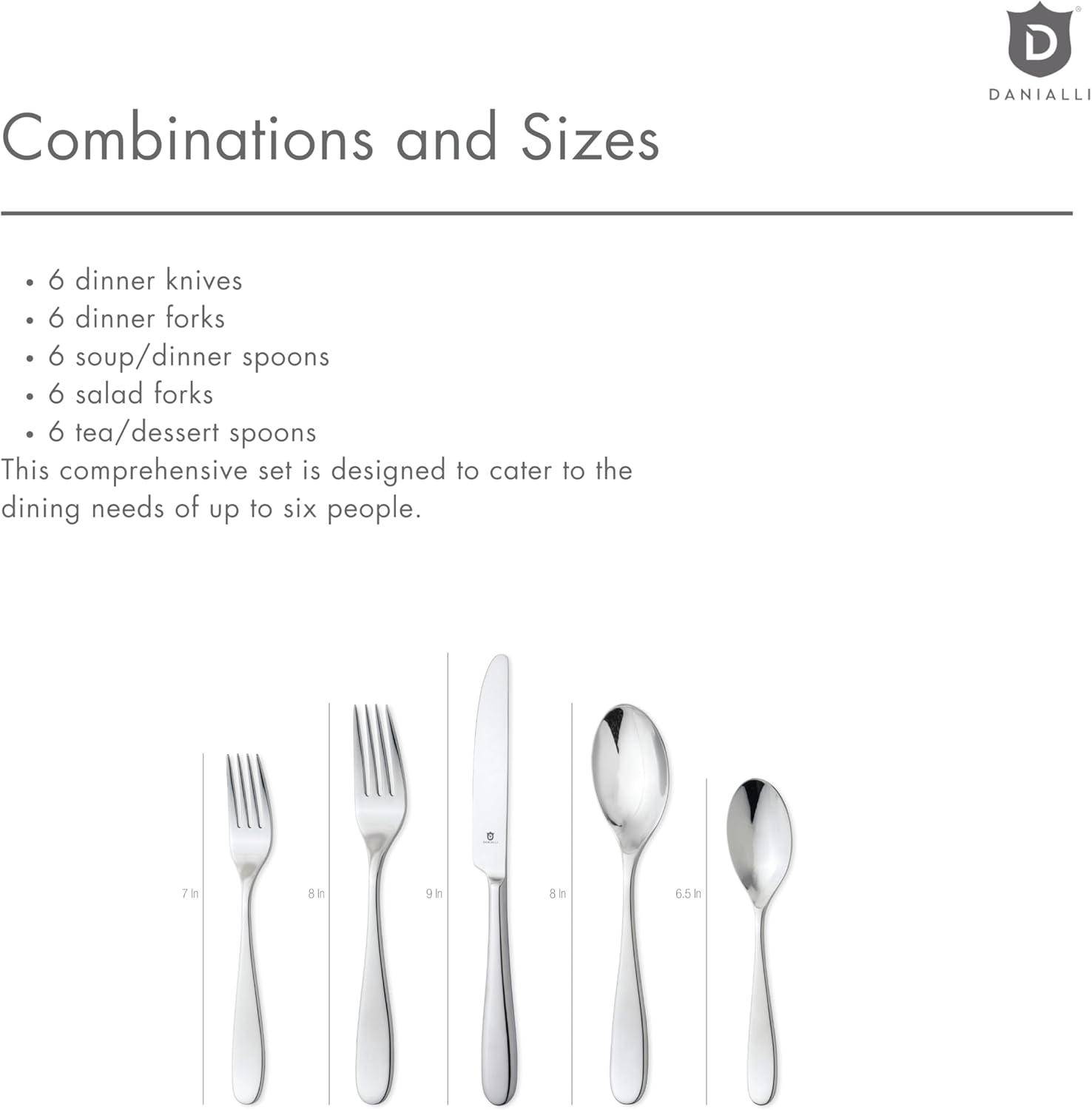 Silverware Set for 6 – 18/10 Stainless Steel Flatware, Mirror Finish, Dishwasher Safe, Durable and Balanced Utensils, Modern Tableware (30-Piece Set, Fidenza)