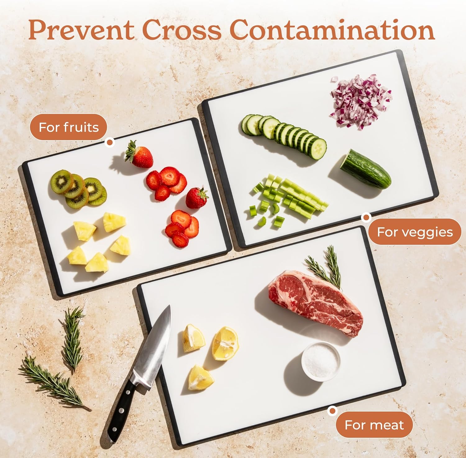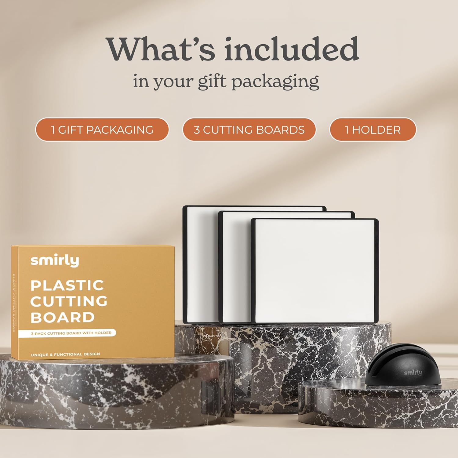 - Confident, Heavy-Duty: Tackle any prep task with Smirly's plastic cutting boards! Made from premium, non-porous, food-grade polypropylene, these chopping boards resist odors and stubborn stains. Experience lasting strength and safety in one indispensable kitchen essential