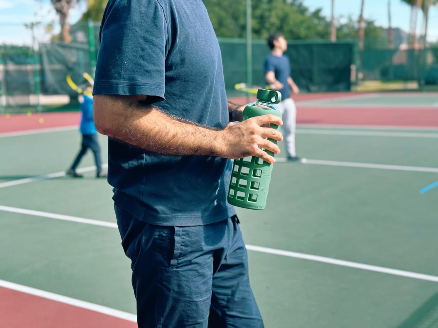 - Safe, Durable & Pure – Glass drinking bottle with silicone sleeve keeps drinks fresh and free from plastic taste. Borosilicate glass and stainless lid provide secure grip and protection.