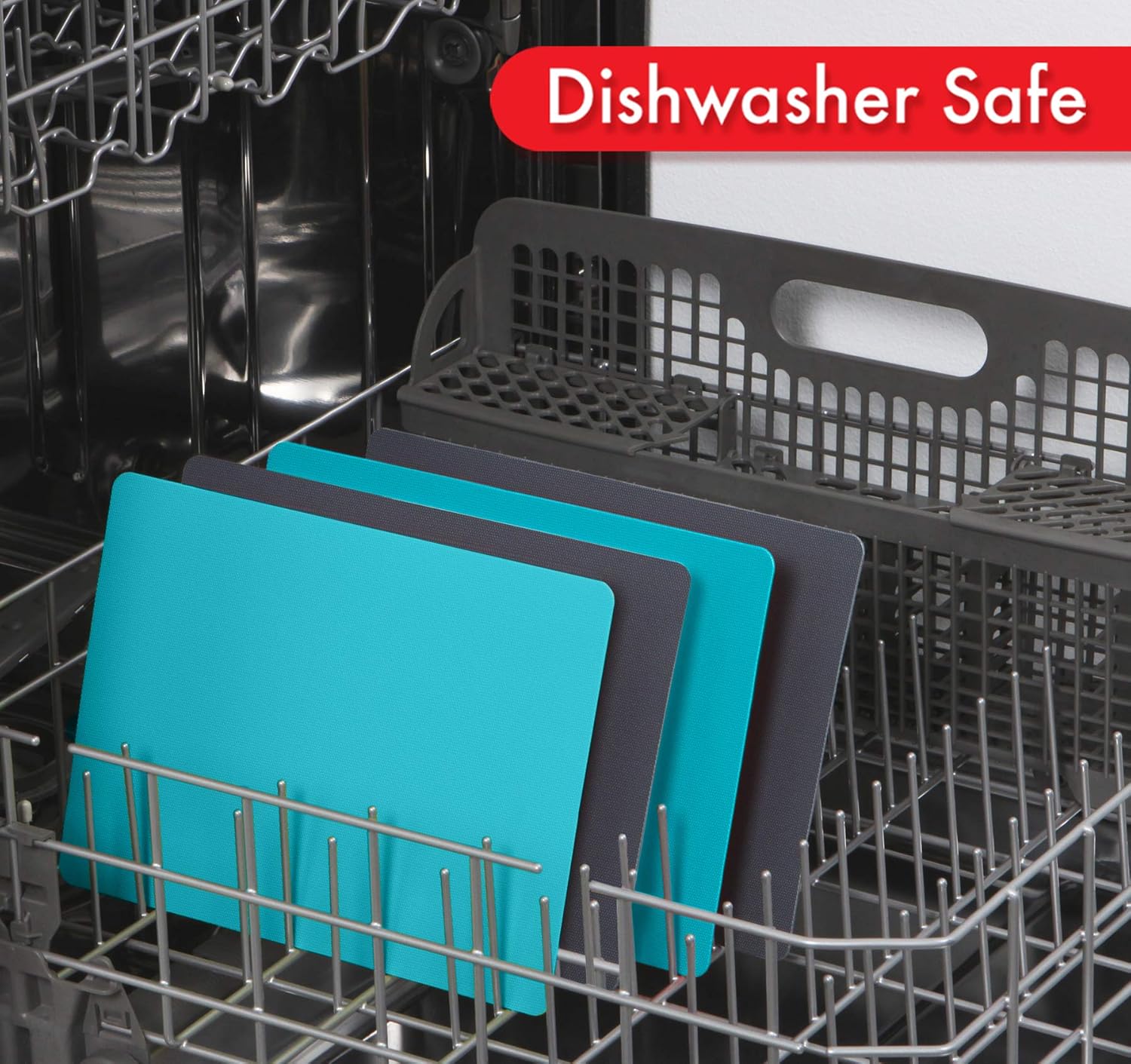 Dexas Heavy Duty Cutting Board Grippmat, Flexible Cutting Boards for Kitchen, Set of 4, Non Slip Plastic Board Cutting Mat 8 by 11 inches, Gray and Turquoise Set Kitchen Gadgets