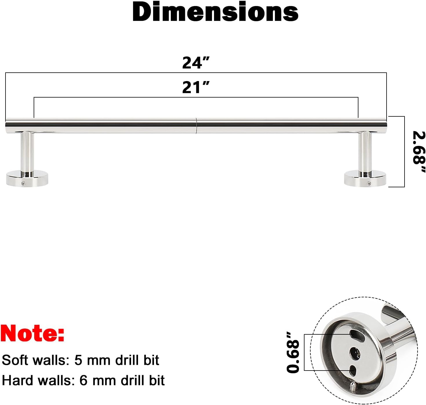 NearMoon Bathroom Towel Bar, Bath Accessories Thicken Stainless Steel Shower Towel Rack for Bathroom, Towel Holder Wall Mounted (1 Pack, Chrome Finish, 24 Inch)
