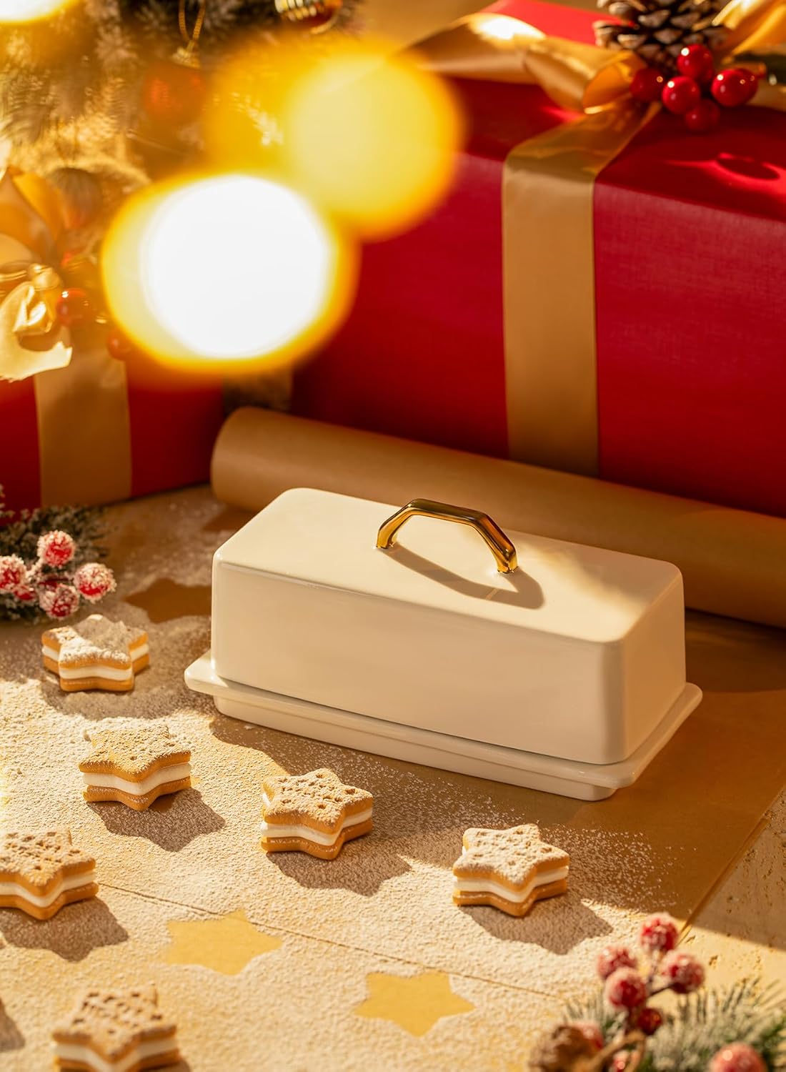 - The Best Choice - Search no more, you have come to the right place! Our butter cover with the handy handle, it let you access the butter easily. And the delicate butter dish adds a touch of elegance to your kitchen. Will dazzle your guests!