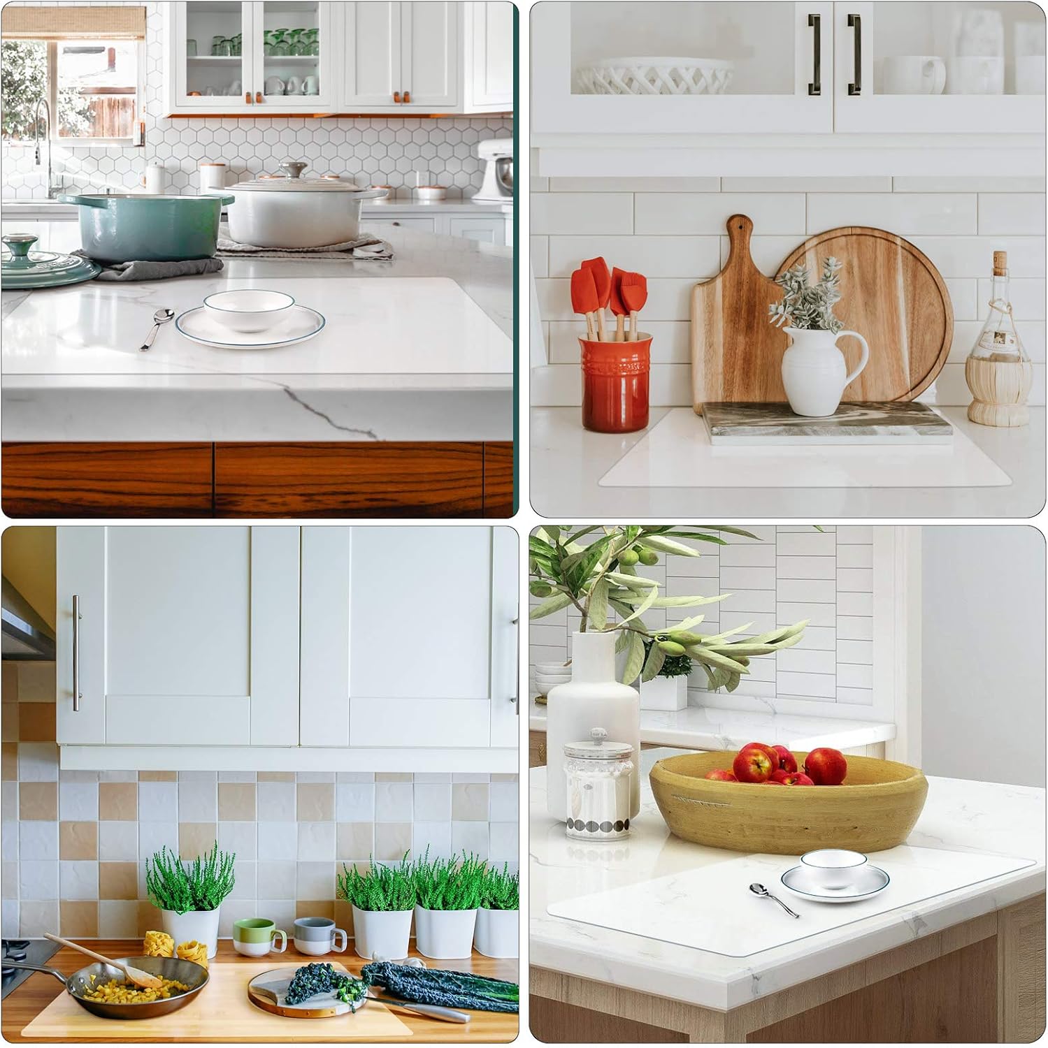 - Size :Sized at 25"x 17"x 0.06"(Length x Width x Thickness), large enough to protect your counter top, it can be placed under the microwave, air fryer, induction stove, toaster oven, coffee maker etc.