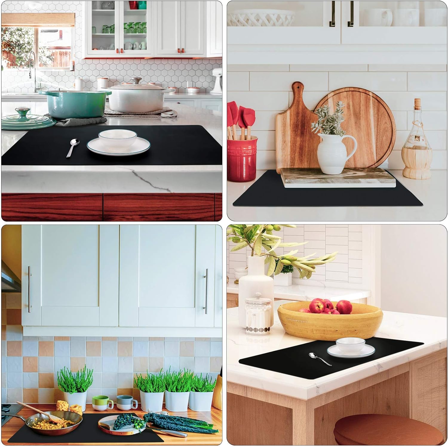 - Countertop Protector : The multipurpose silicone mat can be used as placemats, pot holder, dish mats, tableware, trivet, drains, heat insulated pads to protect the kitchen countertops and other surfaces against spills, scratches, grease, heat, etc.
