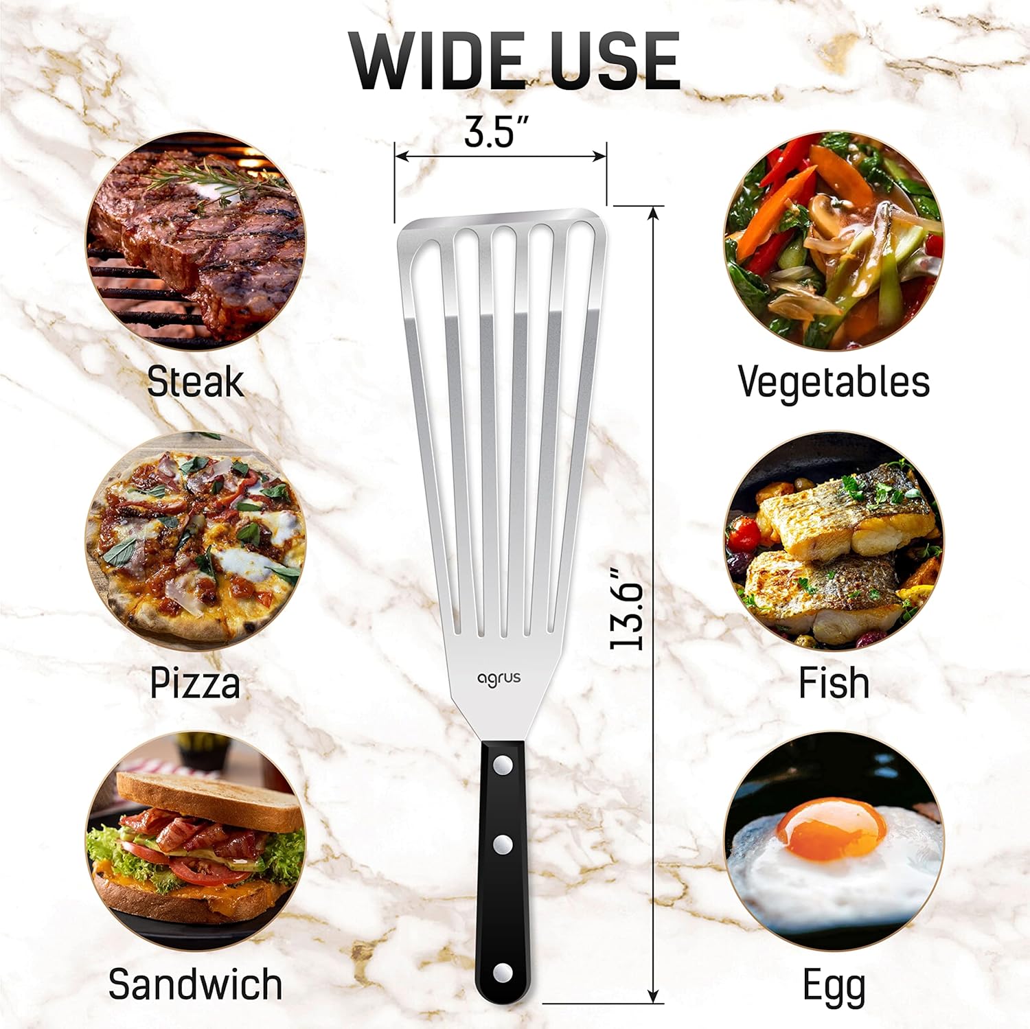 - Multi-Functional – The Fish Spatula is an all-purpose cooking utensil that will help you cook juicy burgers, tender steaks and crispy fish with ease.
