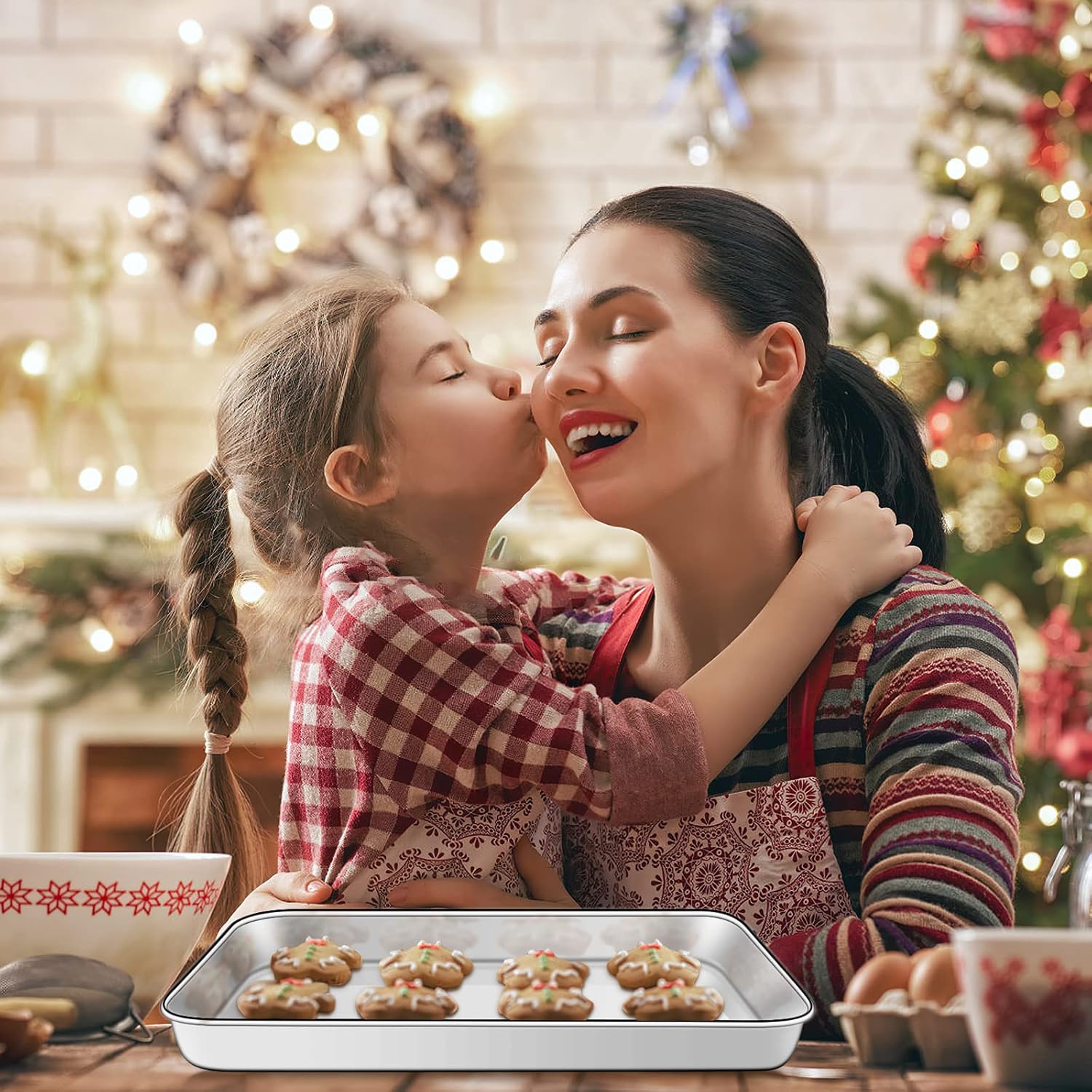 - 🎄【VERSATILE BAKEWARE KIT】The oven pans and baking racks are great for using separately or together. Perfect for baking cookies, breads, bacon, steaks, vegetables, ribs, chicken wings, drumsticks, brownies, pizza and more. The wire racks fit perfectly inside the pan to avoid foods falling through, weld firmly with dense parallel lines allow fast and even air circulation for baking or cooling.