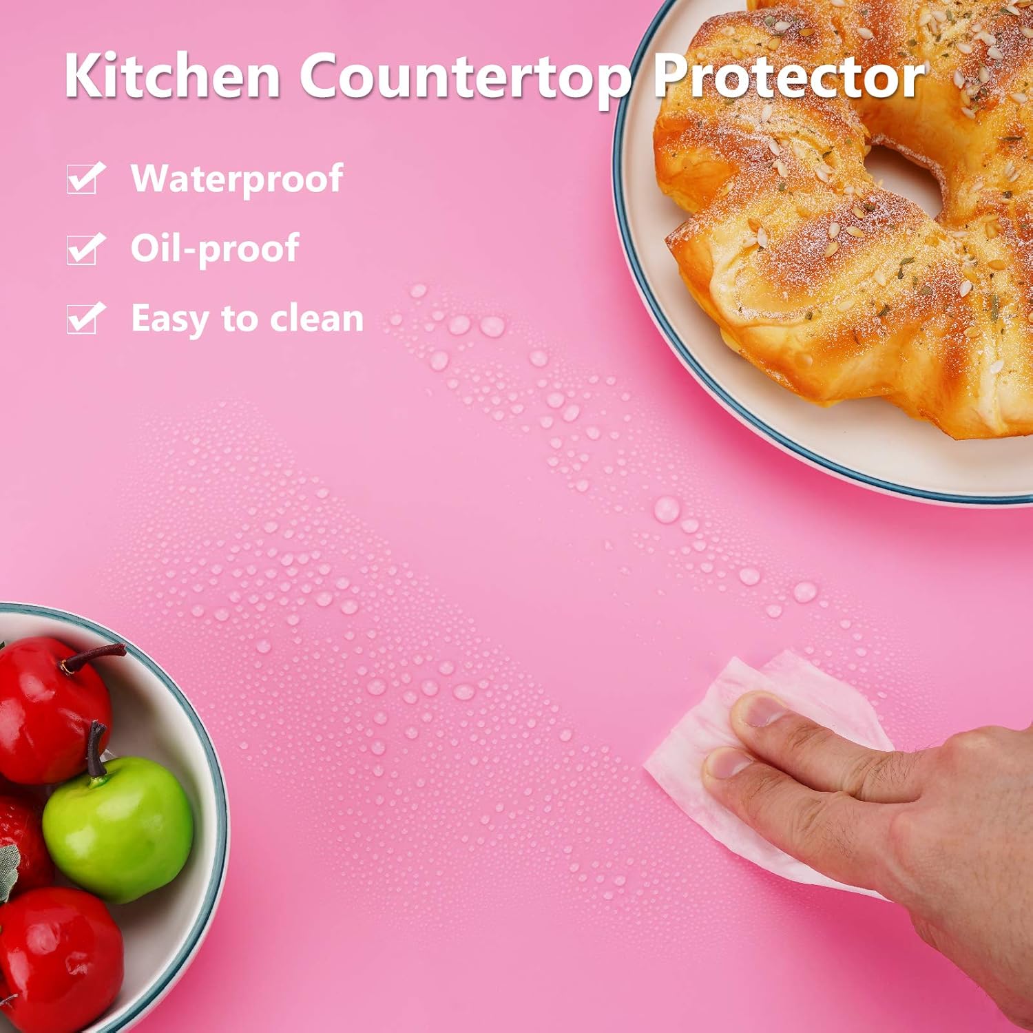 - Durable & Reusable : Countertop pad is made of 100 percent food grade silicone, heat resistant between -40℉ and 446℉.Non-skid, non-stick, not easy to deform or tear up, durable reusable.