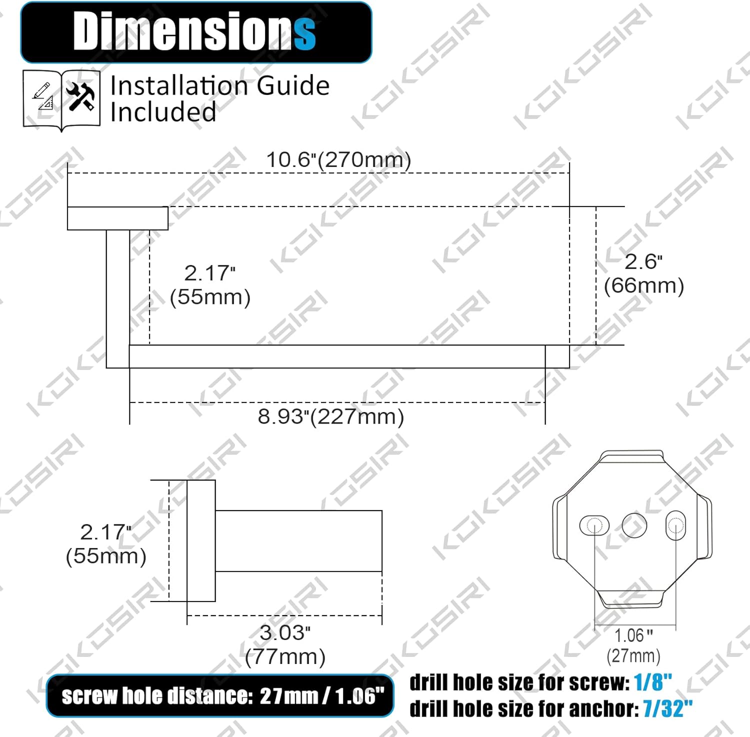 - ◄ Modern Design ► KOKOSIRI Towel bar is designed with simple and clear line for durability. Concealed screw installation provides a elegant look and high-end style for your bathroom and kitchen. Suitable to hold hand towel or kitchen paper roll.