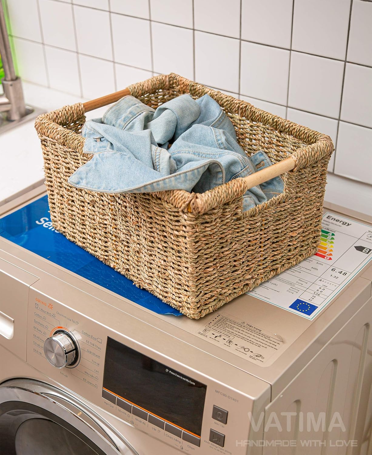 - ✅ NATURAL & HIGH QUALITY - Made of 100% natural Seagrass. Our large storage wicker baskets were carefully handcrafted to perfection. Wicker Baskets come with an iron frame for sturdy storage. The wooden handles on both sides are not only pretty but to help you easy to carry the wicker basket.