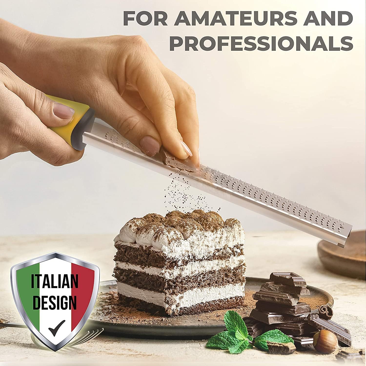 - ZESTER - Add extra flavor to your dish. This zester grater with handle comes with a razor-sharp blade that allows you to easily zest and grate lemons, cheese, ginger, fruits, spices, and vegetables.