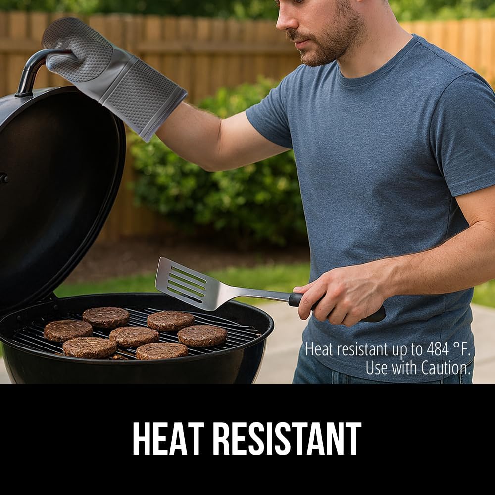 GORILLA GRIP BPA-Free Soft Silicone Oven Mitts, 14.5x8.3, Heat Resistant and Waterproof Cooking Gloves, Thick Cotton Lining, Flexible Gripping for Baking Grilling, Kitchen Potholders Set of 2, Gray
