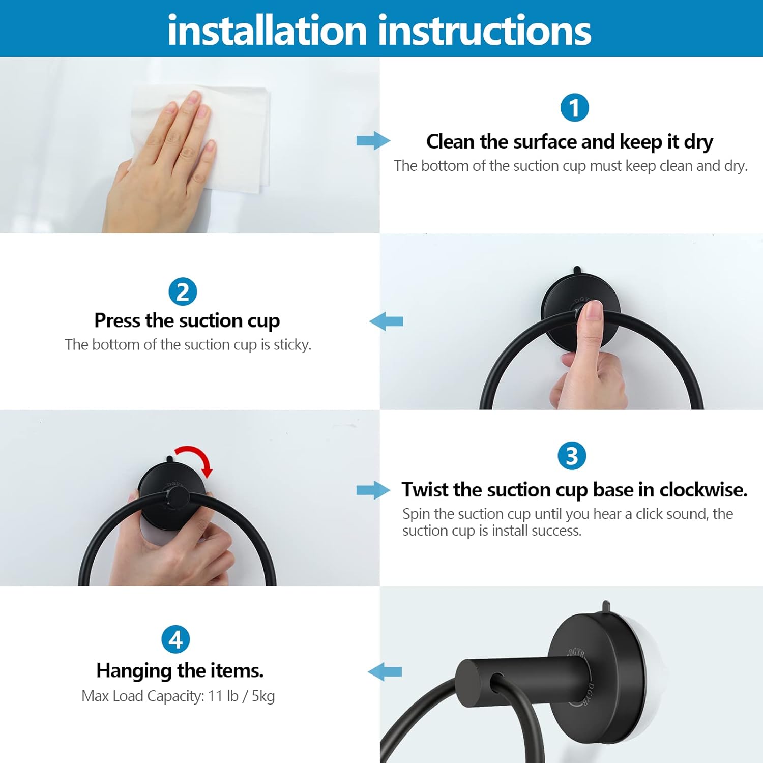 - Matte black towel holder for bathroom is ideal in space constrained bathrooms, compact nature makes it an ideal solution for hand towel rack. These suction cup towel holder are perfect for bathroom, bedroom, guest room, kitchen, etc. adhesive towel ring make your living space more simple and contemporary.