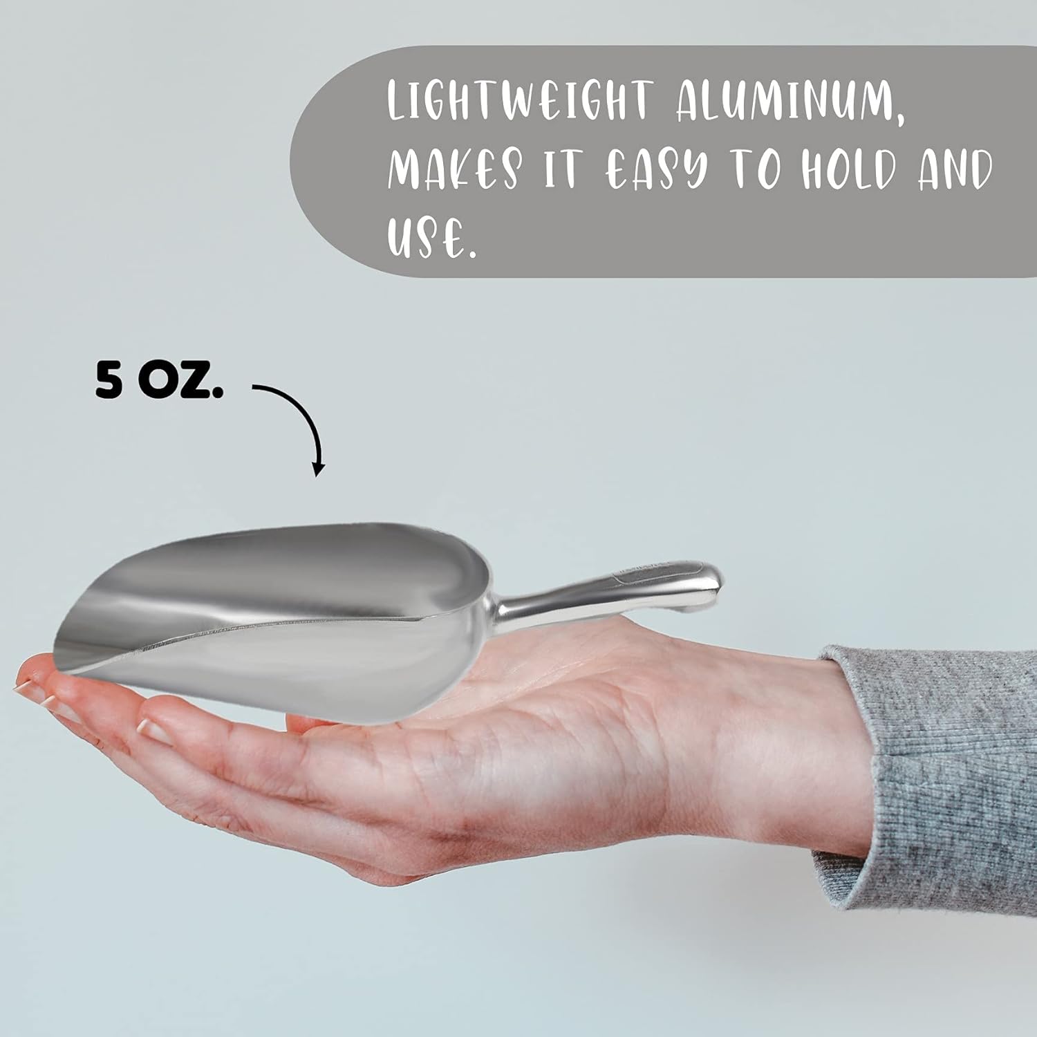 Cast Aluminum Utility Scoop, 5-Ounce - Round Bottom, Small ice scoop For Multi-Purpose Use, With Finger Groove Handle (Hand Wash Only) 5 oz.