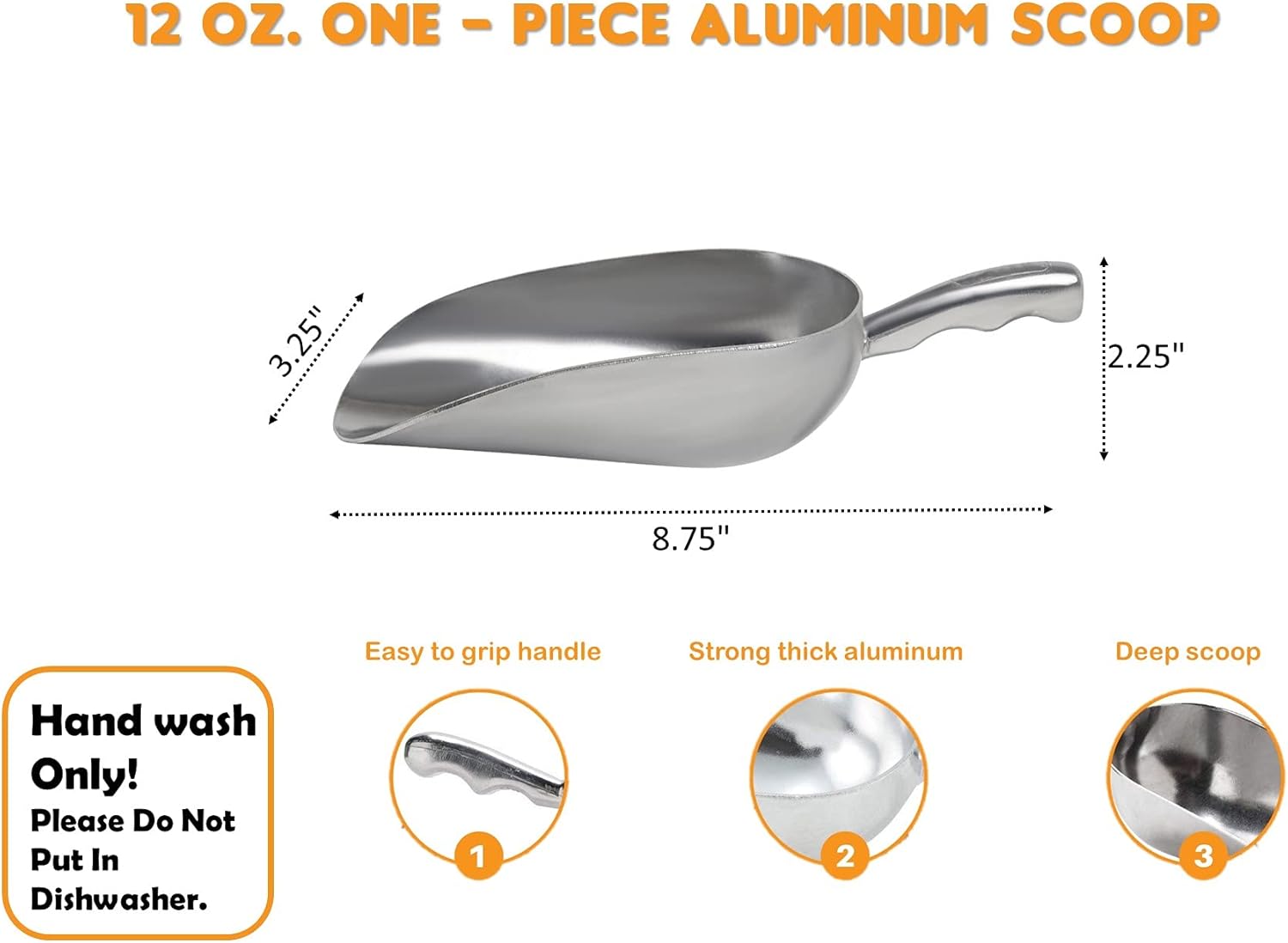 Cast Aluminum Utility Scoop - 12 oz. - Round Bottom, ice scoop For Multi-Purpose Use, With Finger Groove Handle (Hand Wash Only) (12 oz.)