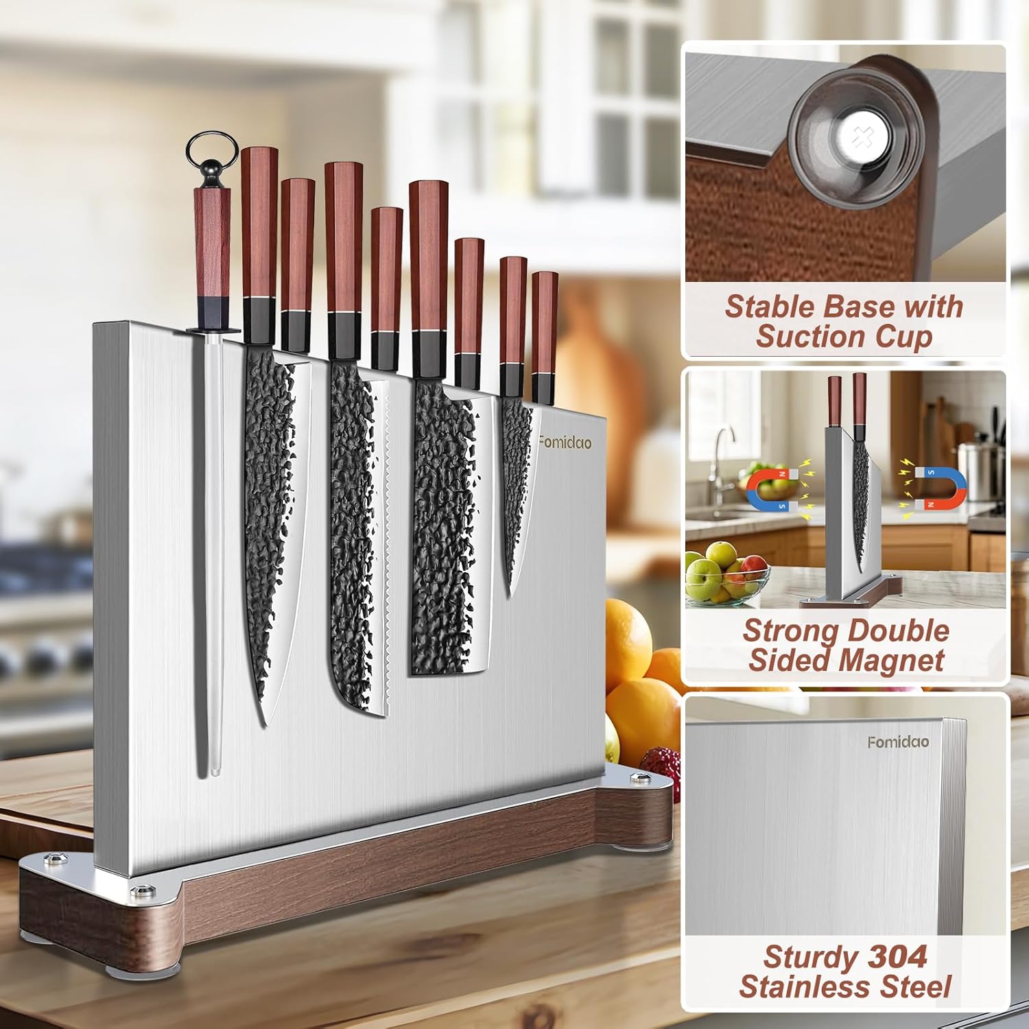 - Larger Capacity Magnetic Knife Holder Stand: Fomidao kitchen knife holder is different from the other ordinary,upgraded kitchen knife holder for kitchen counter is larger in size (magnetic knife board with 13.78x9.84 inches) allows more space for the magnet to hold knives of all sizes ans support longest 9.5"-10“ blade and can be placed more than 14pcs knives