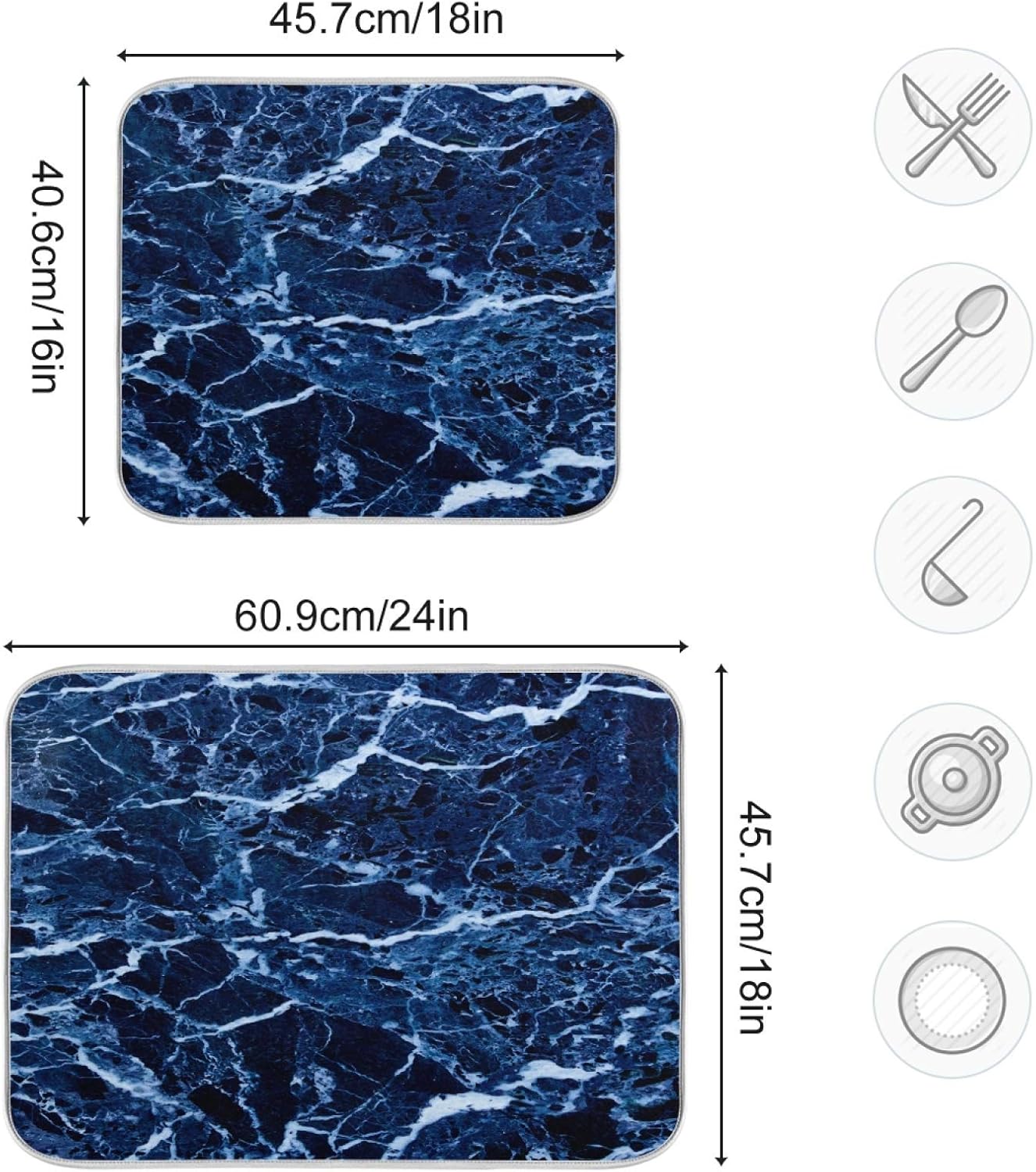 Super Absorbent Dish Drying Mat, Microfiber Fast-Drying Dish Mat, 16" x 18, Kitchen Dish Drying Pad, Navy Blue Marble…