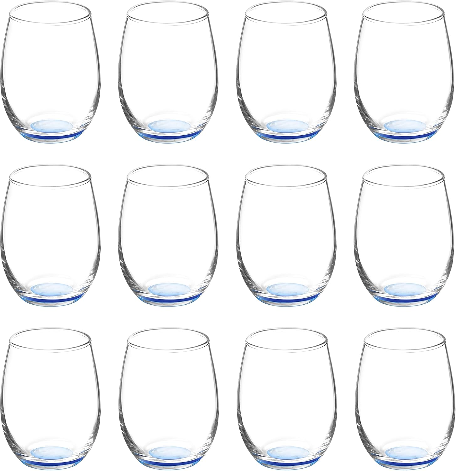 DISCOUNT PROMOS Stemless Wine Glasses by ARC 5.5 oz. Set of 12, Bulk Pack - Perfect for Hotel, Bar, Restaurant or Lounge - Blue